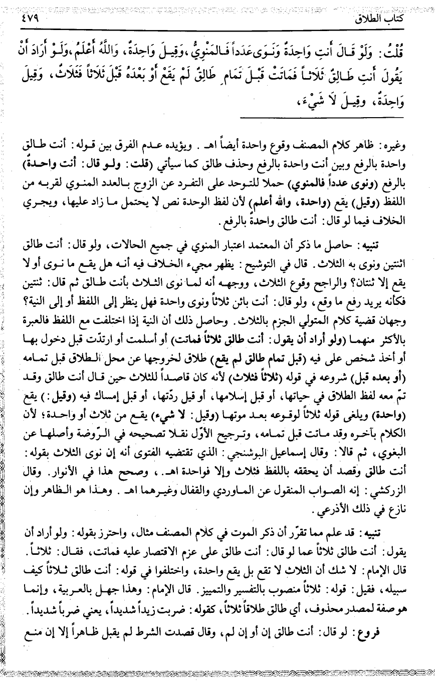 تَنْبِيهٌ: قَدْ عُلِمَ مِمَّا تَقَرَّرَ أَنَّ ذِكْرَ الْمَوْتِ فِي كَلَامِ الْمُصَنِّفِ مِثَالٌ، وَاحْتَرَزَ بِقَوْلِهِ: وَلَوْ أَرَادَ أَنْ يَقُولَ أَنْتِ طَالِقٌ ثَلَاثًا عَمَّا لَوْ قَالَ: أَنْتِ طَالِقٌ عَلَى عَزْمِ الِاقْتِصَارِ عَلَيْهِ فَمَاتَتْ، فَقَالَ: ثَلَاثًا. قَالَ الْإِمَامُ: لَا شَكَّ أَنَّ الثَّلَاثَ لَا تَقَعُ بَلْ يَقَعُ وَاحِدَةٌ، وَاخْتَلَفُوا فِي قَوْلِهِ: أَنْتِ طَالِقٌ ثَلَاثًا كَيْفَ سَبِيلُهُ، فَقِيلَ: قَوْلُهُ: ثَلَاثًا مَنْصُوبٌ بِالتَّفْسِيرِ وَالتَّمْيِيزِ. قَالَ الْإِمَامُ: وَهَذَا جَهْلٌ بِالْعَرَبِيَّةِ، وَإِنَّمَا هُوَ صِفَةٌ لِمَصْدَرٍ مَحْذُوفٍ، أَيْ طَالِقٌ طَلَاقًا ثَلَاثًا، كَقَوْلِهِ: ضَرَبْت زَيْدًا شَدِيدًا، يَعْنِي ضَرْبًا شَدِيدًا.