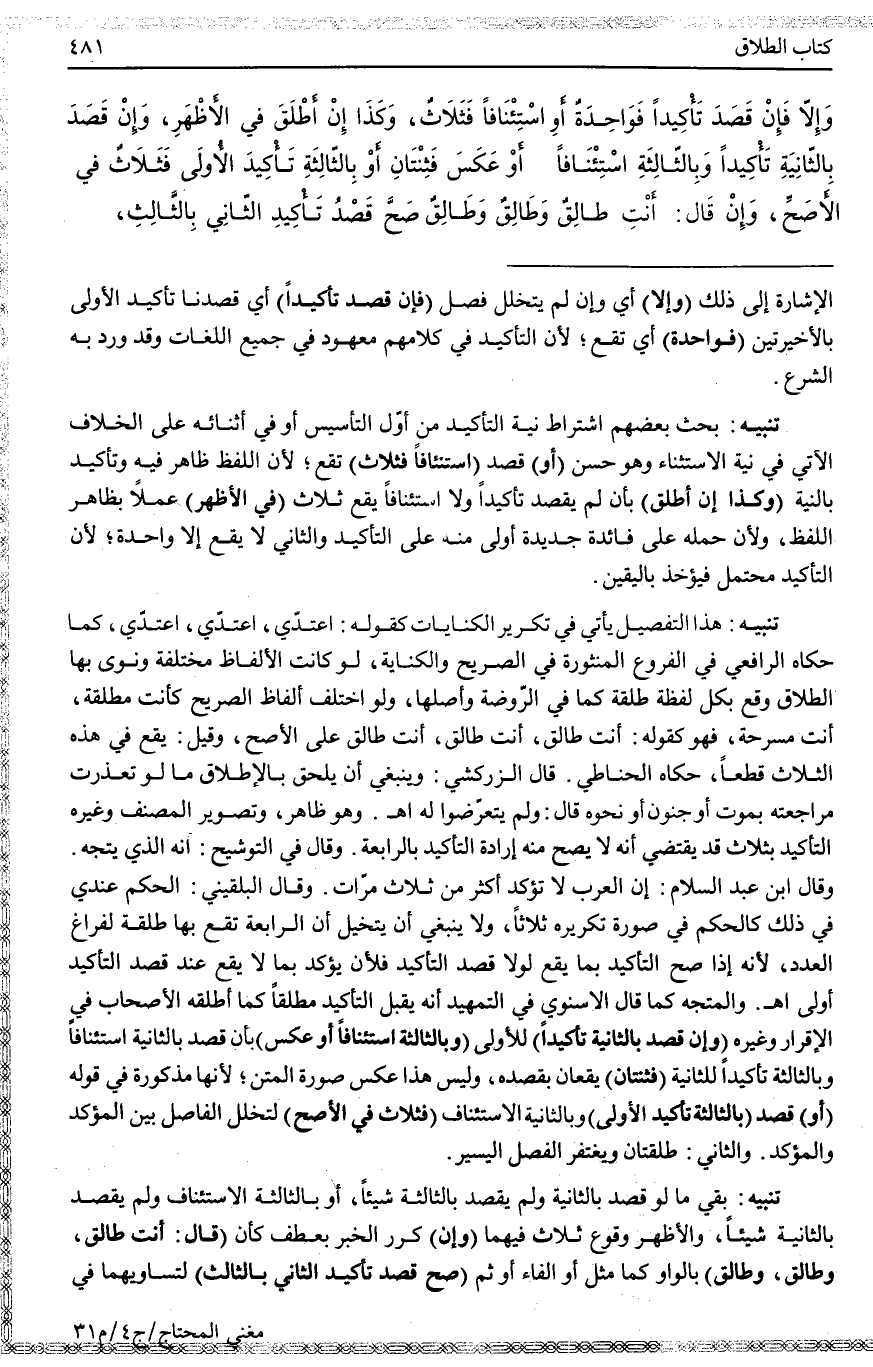 وَهُوَ ظَاهِرٌ، وَتَصْوِيرُ الْمُصَنِّفِ وَغَيْرِهِ التَّأْكِيدَ بِثَلَاثٍ قَدْ يَقْتَضِي أَنَّهُ لَا يَصِحُّ مِنْهُ إرَادَةُ التَّأْكِيدِ بِالرَّابِعَةِ. وَقَالَ فِي التَّوْشِيحِ: أَنَّهُ الَّذِي يُتَّجَهُ. وَقَالَ ابْنُ عَبْدِ السَّلَامِ: إنَّ الْعَرَبَ لَا تُؤَكِّدُ أَكْثَرَ مِنْ ثَلَاثِ مَرَّاتٍ. وَقَالَ الْبُلْقِينِيُّ: الْحُكْمُ عِنْدِي فِي ذَلِكَ كَالْحُكْمِ فِي صُورَةِ تَكْرِيرِهِ ثَلَاثًا، وَلَا يَنْبَغِي أَنْ يَتَخَيَّلَ أَنَّ الرَّابِعَةَ تَقَعُ بِهَا طَلْقَةٌ لِفَرَاغِ الْعَدَدِ؛ لِأَنَّهُ إذَا صَحَّ التَّأْكِيدُ بِمَا يَقَعُ لَوْلَا قَصْدُ التَّأْكِيدِ فَلَأَنْ يُؤَكِّدَ بِمَا لَا يَقَعُ عِنْدَ قَصْدِ التَّأْكِيدِ أَوْلَى اهـ.