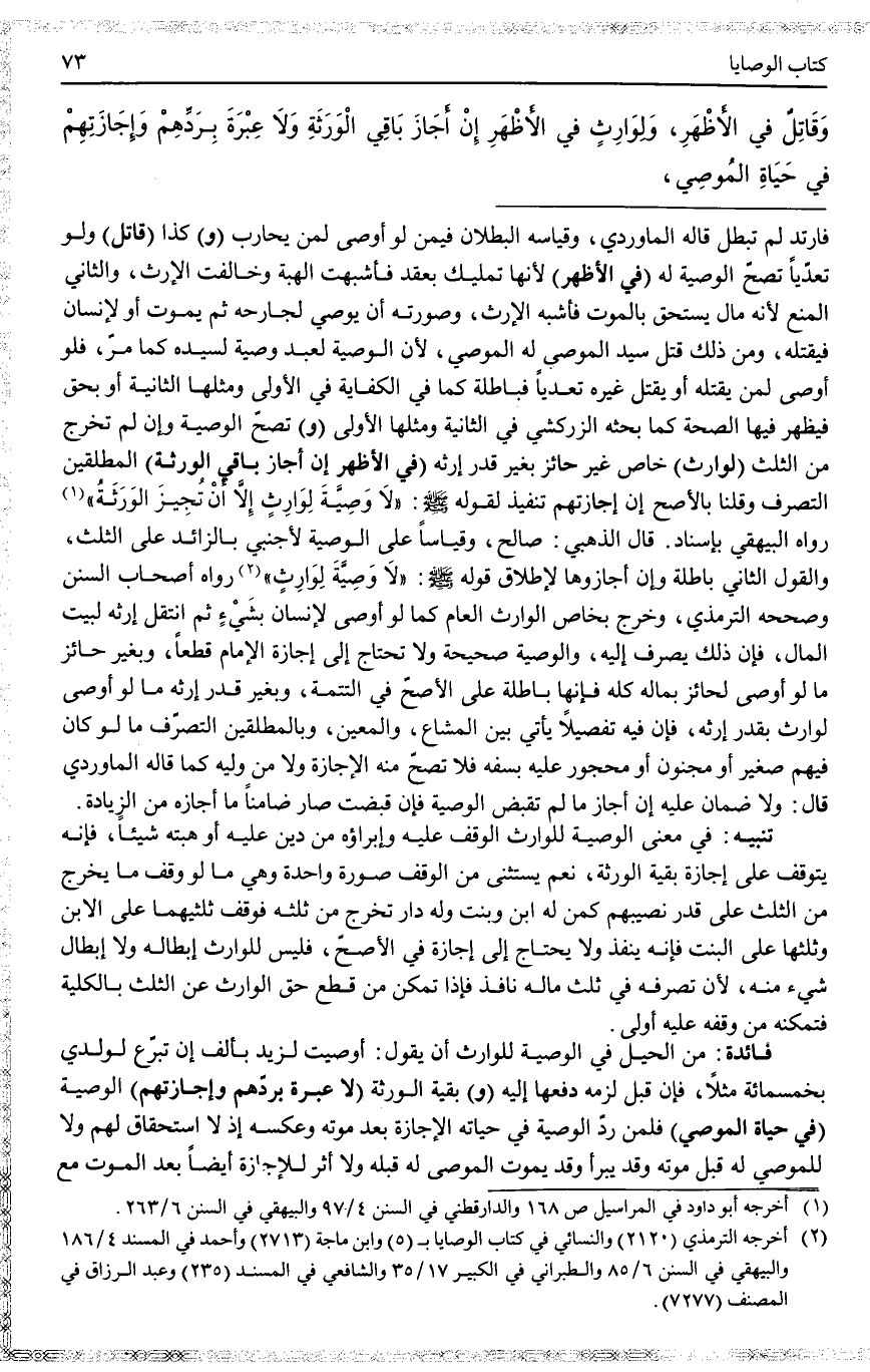 (وَ) تَصِحُّ الْوَصِيَّةُ وَإِنْ لَمْ تَخْرُجْ مِنْ الثُّلُثِ (لِوَارِثٍ) خَاصٍّ غَيْرِ حَائِزٍ بِغَيْرِ قَدْرِ إرْثِهِ (فِي الْأَظْهَرِ إنْ أَجَازَ بَاقِي الْوَرَثَةِ) الْمُطْلَقِينَ التَّصَرُّفُ وَقُلْنَا بِالْأَصَحِّ إنَّ إجَازَتَهُمْ تَنْفِيذٌ لِقَوْلِهِ - صَلَّى اللَّهُ عَلَيْهِ وَسَلَّمَ -: «لَا وَصِيَّةَ لِوَارِثٍ إلَّا أَنْ تُجِيزَ الْوَرَثَةُ» رَوَاهُ الْبَيْهَقِيُّ بِإِسْنَادٍ. قَالَ الذَّهَبِيُّ: صَالِحٌ