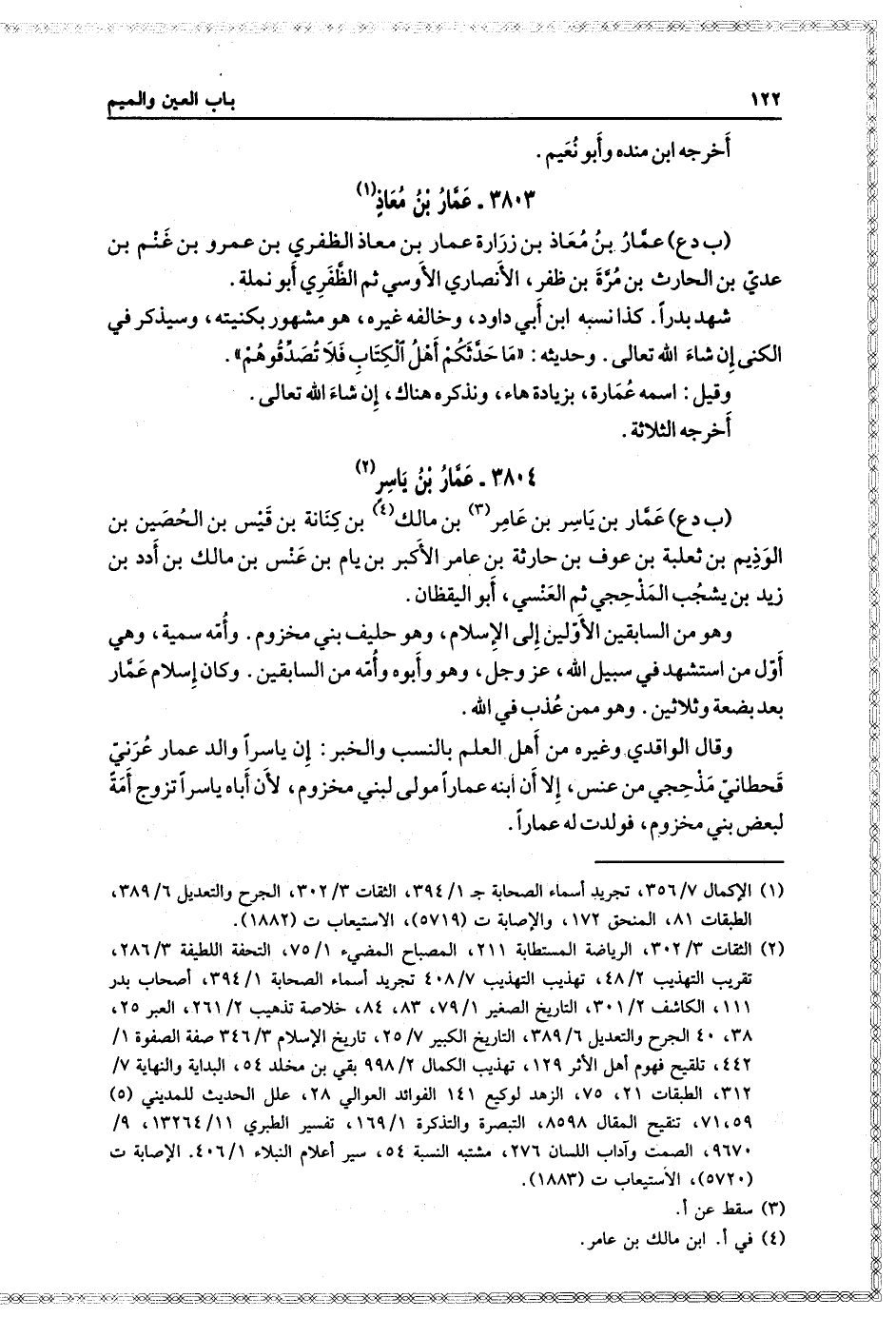 ب د ع: عمار بْن ياسر بْن عَامِر بْن مَالِك بْن كنانة بْن قيس بْن الحصين بْن الوذيم بْن ثعلبة بْن عوف بْن حارثة بْن عَامِر الأكبر بْن يام بْن عنس بْن مالك بْن أدد بْن زَيْد بْن يشجب المذحجي ثُمَّ العنسي، أَبُو اليقظان وهو من السابقين الأولين إِلَى الْإِسْلَام، وهو حليف بني مخزوم، وأمه سمية، وهي أول من استشهد فِي سبيل اللَّه عَزَّ وَجَلَّ وهو، وأبوه، وأمه من السابقين، وكان إسلام عمار بعد بضعة وثلاثين، وهو ممن عذب فِي اللَّه.