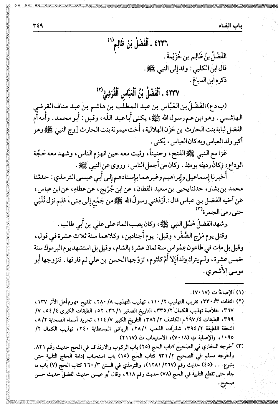 ب د ع: الفضل بْن الْعَبَّاس بْن عَبْد المطلب بْن هاشم بْن عَبْد مناف الْقُرَشِيّ الهاشمي وهو ابْن عم رَسُول اللَّه صَلَّى اللَّهُ عَلَيْهِ وَسَلَّمَ يكنى: أبا عَبْد اللَّه، وقيل: أَبُو مُحَمَّد، وأمه أم الفضل لبابة بِنْت الحارث بْن حزن الهلالية، أخت ميمونة بِنْت الحارث زوج النَّبِيّ صَلَّى اللَّهُ عَلَيْهِ وَسَلَّمَ وهو أكبر ولد الْعَبَّاس وبه كَانَ الْعَبَّاس يكنى.