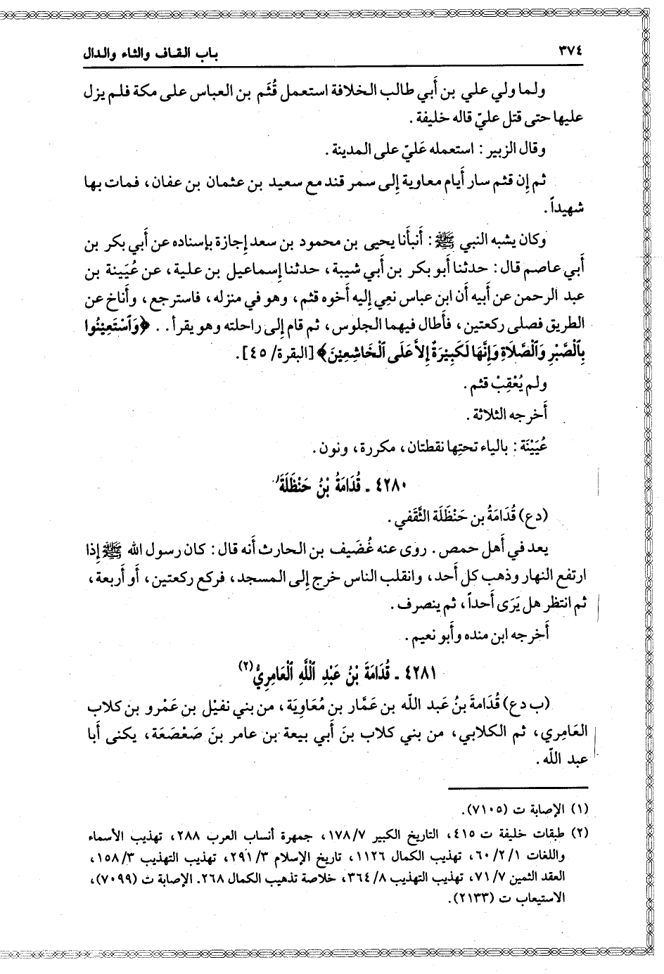 ب د ع: قدامة بْن عَبْد اللَّه بْن عمار بْن معاوية من بني نفيل بْن عَمْرو بْن كلاب العامري، ثُمَّ الكلابي، من بني كلاب بْن أَبِي رَبِيعة بْن عَامِر بْن صعصعة، يكنى أبا عَبْد اللَّه.