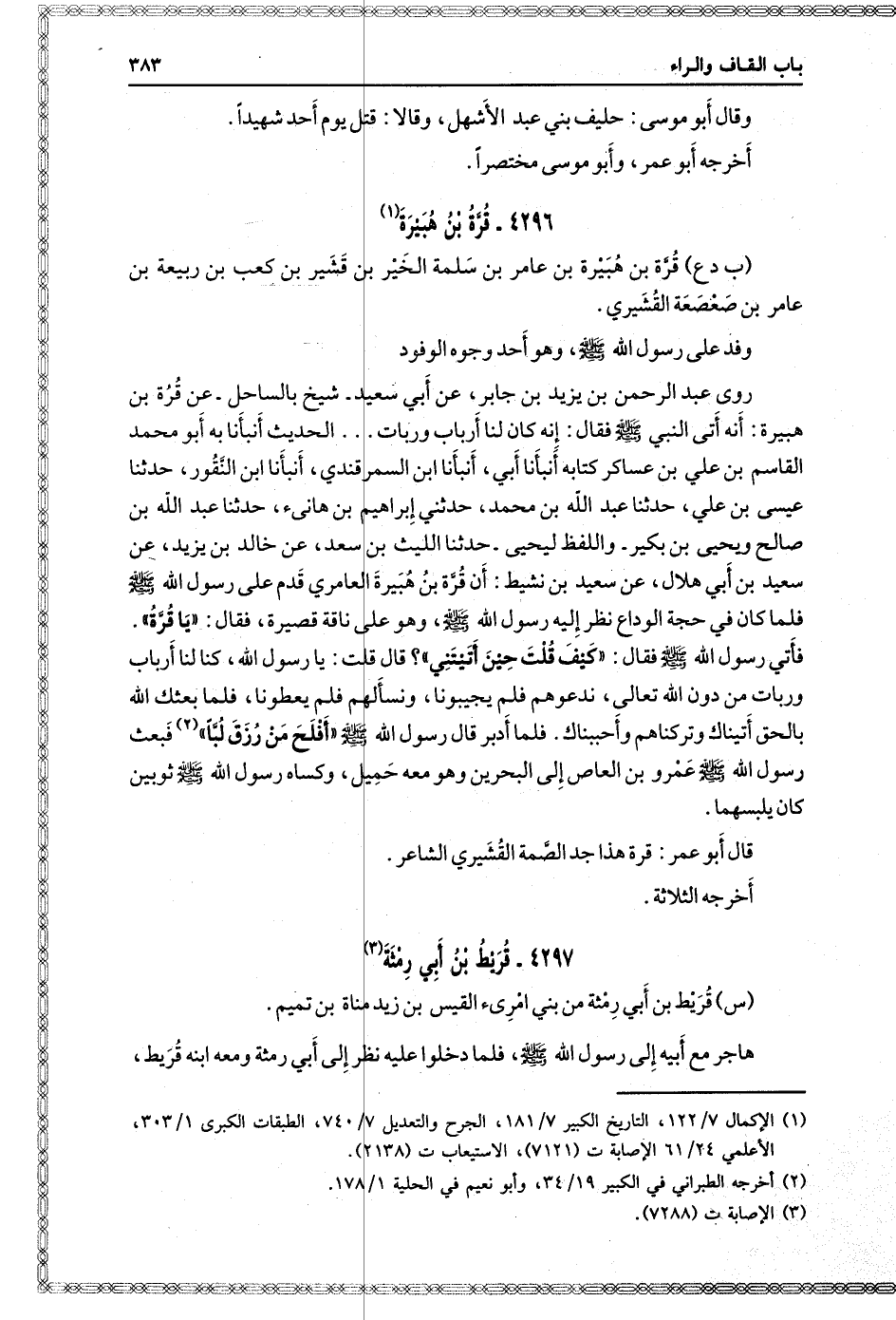 ب د ع: قُرَّة بْن هبيرة بْن عَامِر بْن سَلَمة الخير بْن قشير بْن كعب بْن رَبِيعة بْن عَامِر بْن صعصعة القشيري وفد عَلَى رَسُول اللَّه صَلَّى اللَّهُ عَلَيْهِ وَسَلَّمَ وهو أحد وجوه الوفود.