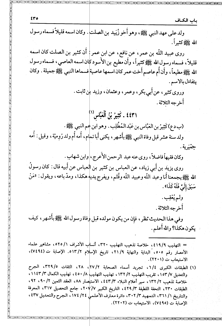 ب د ع: كَثِير بْن الْعَبَّاس بْن عَبْد المطلب وهو ابْن عم النَّبِيّ صَلَّى اللَّهُ عَلَيْهِ وَسَلَّمَ ولد سنة عشر قبل وفاة النَّبِيّ صَلَّى اللَّهُ عَلَيْهِ وَسَلَّمَ بأشهر، يكنى: أبا تمام، أمه ولد رومية، وقيل: أمه حميرية.