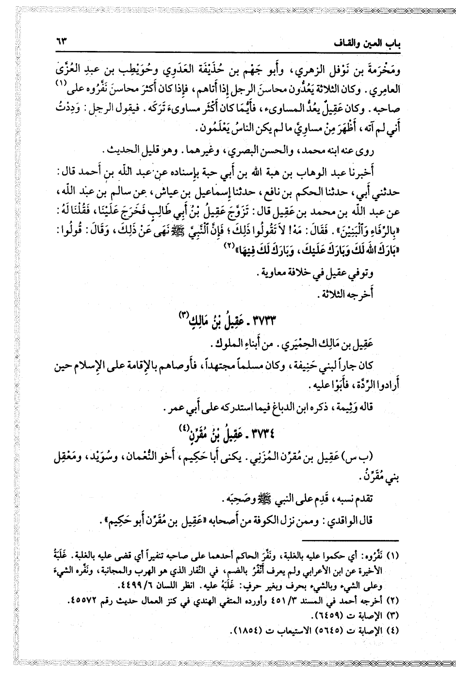 قَالَ الواقدي: وممن نزل الكوفة من الصحابة عقيل بْن مقرن أَبُو حكيم.