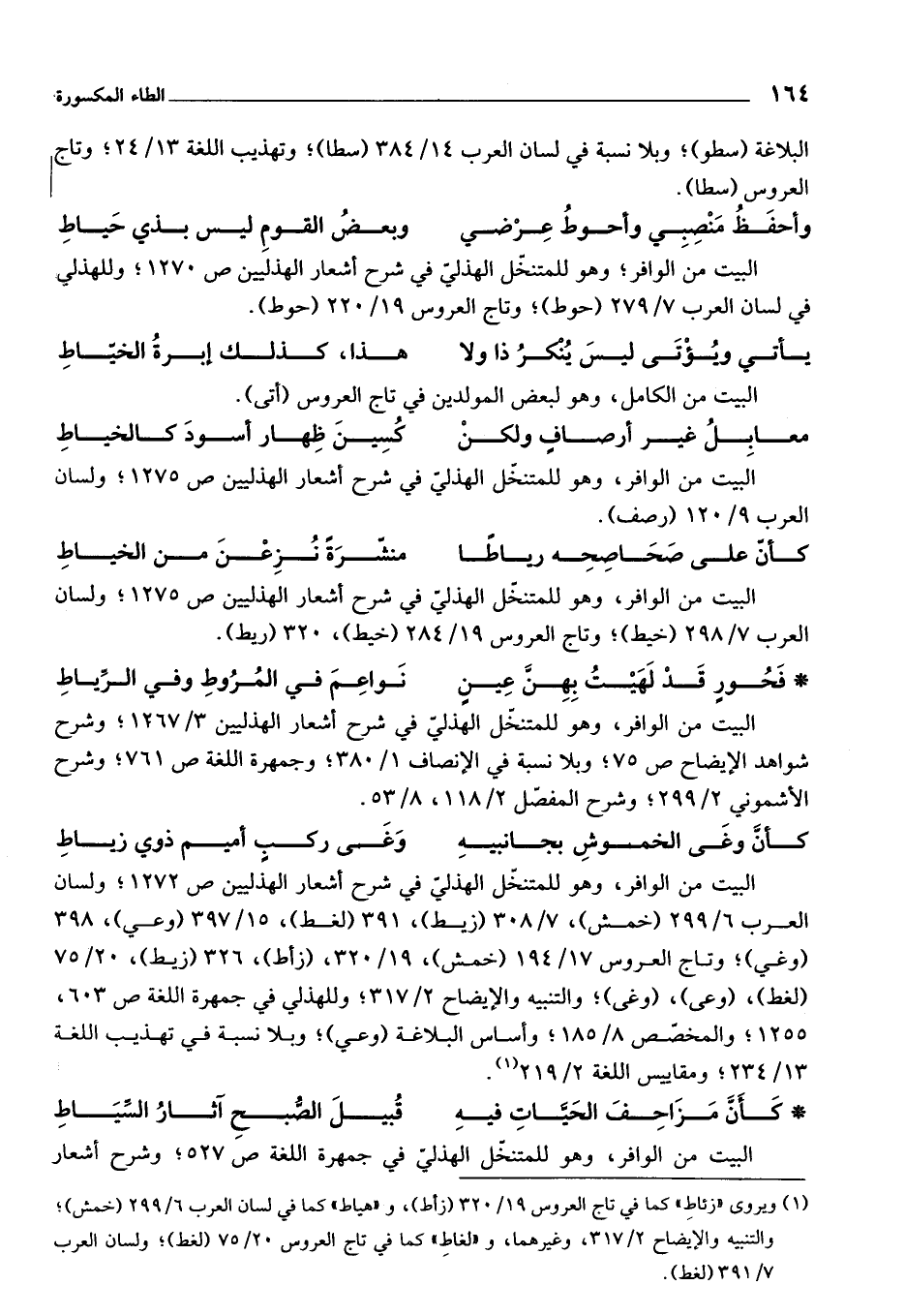(¬1) ويروي «زئاط» كما في تاج العروس 19/ 320 (زأط)، و «هياط» كما في لسان العرب 6/ 299 (خمش)؛ والتنبيه والإيضاح 2/ 317، وغيرهما، و «لغاط» كما في تاج العروس 20/ 75 (لغط)؛ ولسان العرب 7/ 391 (لغط).