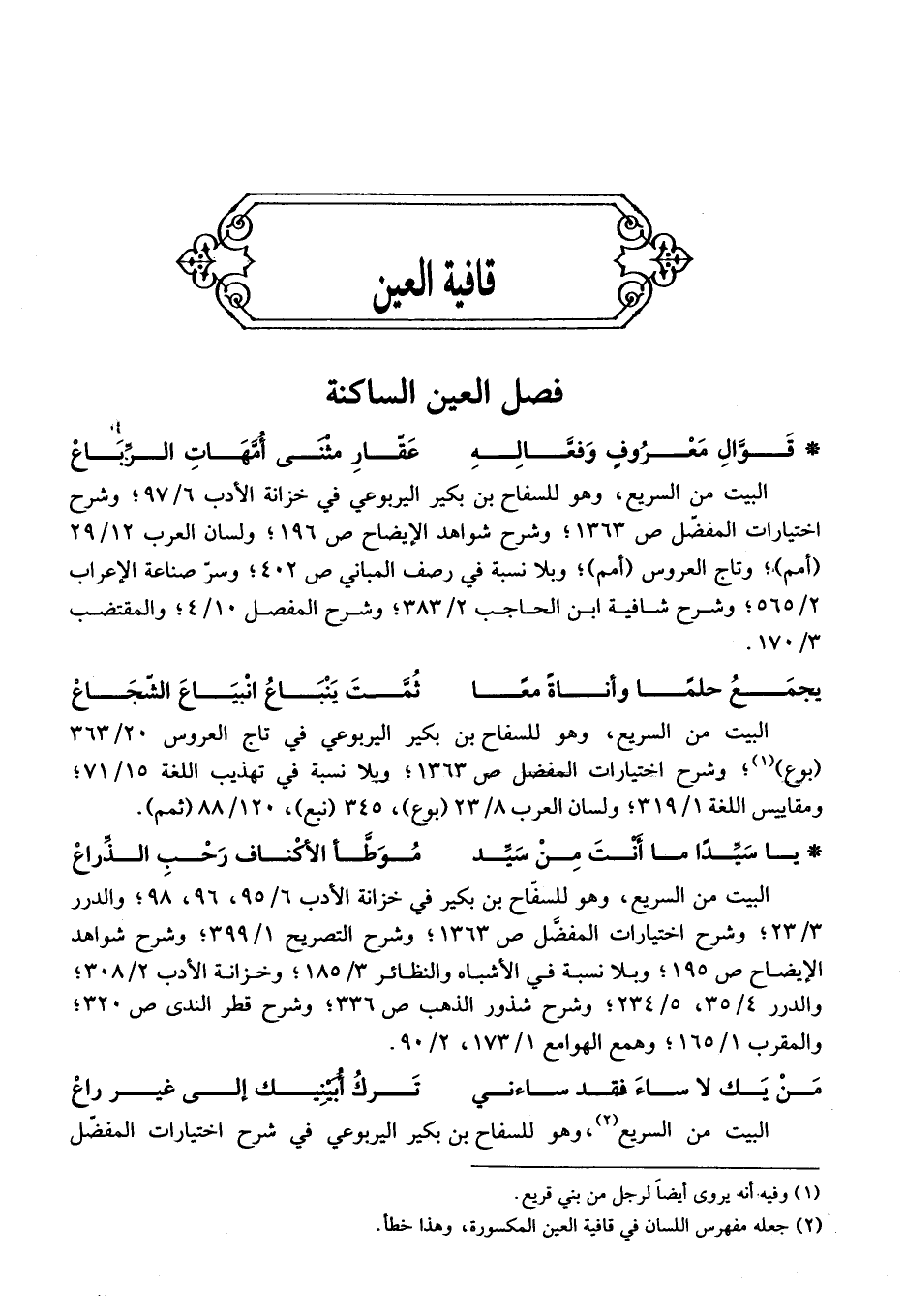 (¬2) جعله مفهرس اللسان في قافية العين المكسورة، وهذا خطأ.