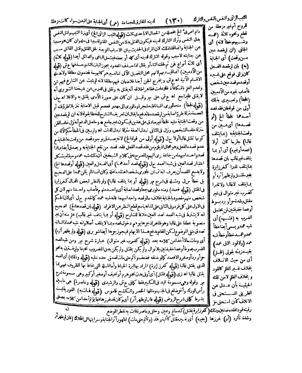 الثَّيِّبُ الزَّانِي، وَالنَّفْسُ بِالنَّفْسِ، وَالتَّارِكُ لِدِينِهِ الْمُفَارِقُ لِلْجَمَاعَةِ» (هِيَ) أَيْ: الْجِنَايَةُ عَلَى الْبَدَنِ سَوَاءٌ أَكَانَتْ مُزْهِقَةً لِلرُّوحِ، أَمْ غَيْرَ مُزْهِقَةٍ مِنْ قَطْعٍ، وَنَحْوِهِ ثَلَاثَةٌ: (عَمْدٌ، وَشِبْهُهُ، وَخَطَأٌ؛ لِأَنَّهُ) أَيْ: الْجَانِي (إنْ لَمْ يَقْصِدْ عَيْنَ مَنْ وَقَعَتْ) أَيْ: الْجِنَايَةُ (بِهِ) بِأَنْ لَمْ يَقْصِدْ الْفِعْلَ كَأَنْ زَلِقَ فَوَقَعَ عَلَى ظَهْرِهِ، أَوْ قَصَدَهُ، وَقَصَدَ عَيْنَ شَخْصٍ فَأَصَابَ غَيْرَهُ مِنْ الْآدَمِيِّينَ (فَخَطَأٌ) ، وَتَعْبِيرِي بِذَلِكَ أَوْلَى مِنْ قَوْلِهِ فَإِنْ فُقِدَ قَصْدُ أَحَدِهِمَا فَخَطَأٌ إلَى آخِرِهِ. (أَوْ قَصَدَهَا) أَيْ: عَيْنَ مَنْ وَقَعَتْ الْجِنَايَةُ بِهِ (بِمَا يُتْلِفُ غَالِبًا) جَارِحًا كَانَ، أَوْ لَا (فَعَمْدٌ، أَوْ غَيْرُهُ) أَيْ: أَوْ بِمَا يُتْلِفُ غَيْرَ غَالِبٍ بِأَنَّ قَصَدَهَا بِمَا يُتْلِفُ نَادِرًا كَغَرْزِ إبْرَةٍ بِغَيْرِ مَقْتَلٍ، وَلَمْ يَظْهَرْ أَثَرُهُ، أَوْ بِمَا يُتْلِفُ لَا غَالِبًا، وَلَا نَادِرًا كَضَرْبٍ غَيْرِ مُتَوَالٍ فِي غَيْرِ مَقْتَلٍ، وَشِدَّةِ حَرٍّ، وَبَرْدٍ بِسَوْطٍ، أَوْ عَصًا خَفِيفَتَيْنِ لِمَنْ يَحْتَمِلُ الضَّرْبَ بِهِ (فَشِبْهُهُ) أَيْ: شِبْهُ عَمْدٍ، وَيُسَمَّى أَيْضًا خَطَأَ عَمْدٍ، وَعَمْدَ خَطَأٍ، وَخَطَأَ شِبْهِ عَمْدٍ.