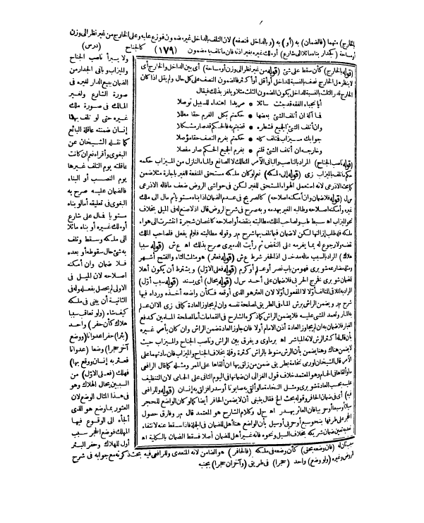 ـــــــــــــــــــــــــــــQ (قَوْلُهُ: بِالْخَارِجِ) كَأَنْ سَقَطَ عَلَى شَيْءٍ (قَوْلُهُ: مِنْ غَيْرِ نَظَرٍ إلَى وَزْنٍ، أَوْ مِسَاحَةٍ) أَيْ: بَيْنَ الدَّاخِلِ، وَالْخَارِجِ أَيْ: لَا يُنْظَرُ هَلْ الْخَارِجُ نِصْفٌ بِالنِّسْبَةِ لِلدَّاخِلِ، أَوْ أَقَلُّ أَوْ أَكْثَرُ فَالْمَضْمُونُ النِّصْفُ عَلَى كُلِّ حَالٍ وَلَمْ يَقُلْ إذَا كَانَ الْخَارِجُ قَدْرَ الثُّلُثِ بِالنِّسْبَةِ لِلدَّاخِلِ يَكُونُ الْمَضْمُونُ الثُّلُثَ مَثَلًا، وَيُلْغَزُ بِذَلِكَ فَيُقَالُ:
