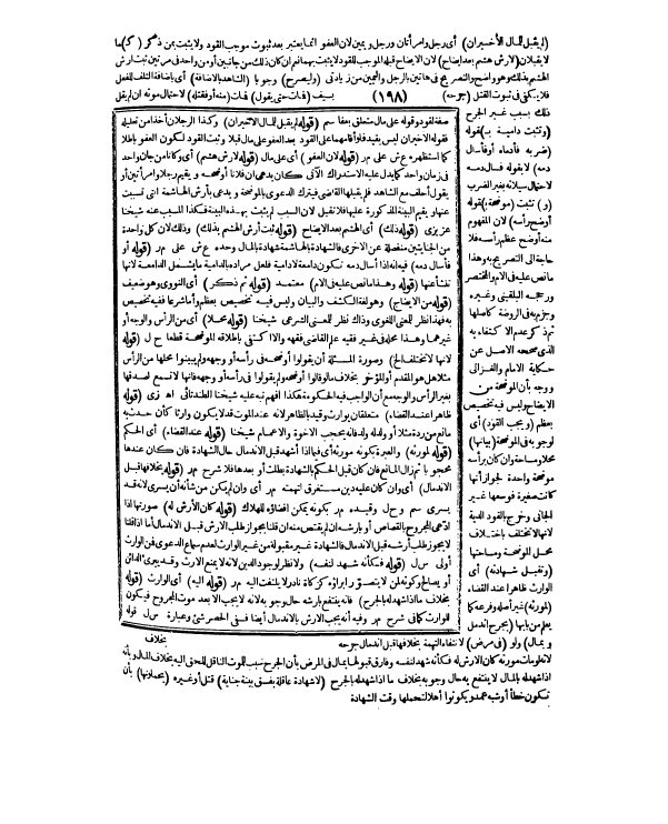 (وَتُقْبَلُ شَهَادَتُهُ) أَيْ الْوَارِثِ ظَاهِرًا عِنْدَ الْقَضَاءِ (لِمُوَرِّثِهِ) غَيْرِ أَصْلِهِ وَفَرْعِهِ كَمَا يُعْلَمُ مِنْ بَابِهَا (بِجُرْحٍ انْدَمَلَ وَبِمَالٍ) وَلَوْ (فِي مَرَضٍ) لِانْتِفَاءِ التُّهْمَةِ بِخِلَافِهَا قَبْلَ انْدِمَالِ جُرْحِهِ؛ لِأَنَّهُ لَوْ مَاتَ مُوَرِّثُهُ كَانَ الْأَرْشُ لَهُ فَكَأَنَّهُ شَهِدَ لِنَفْسِهِ وَفَارَقَ قَبُولَهَا بِمَالٍ فِي الْمَرَضِ بِأَنَّ الْجُرْحَ سَبَبُ الْمَوْتِ النَّاقِلِ لِلْحَقِّ إلَيْهِ بِخِلَافِ الْمَالِ وَبِأَنَّهُ إذَا شَهِدَ لَهُ بِالْمَالِ لَا يَنْتَفِعُ بِهِ حَالَ وُجُوبِهِ بِخِلَافِ مَا إذَا شَهِدَ لَهُ بِالْجُرْحِ (لَا شَهَادَةَ عَاقِلَةٍ بِفِسْقِ بَيِّنَةِ جِنَايَةِ) قَتْلٍ أَوْ غَيْرِهِ (يَحْمِلُونَهَا) بِأَنْ تَكُونَ خَطَأً أَوْ شَبَهَ عَمْدٍ وَيَكُونُوا أَهْلًا لِتَحَمُّلِهَا وَقْتَ الشَّهَادَةِ