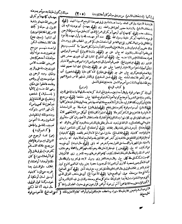 (قَوْلُهُ: وَيُشْتَرَطُ الْقَبُولُ) أَيْ عَدَمُ الرَّدِّ وَلَيْسَ لَهُ عَزْلُهُ بَعْدَ ذَلِكَ؛ لِأَنَّهُ لَيْسَ نَائِبًا عَنْهُ ح ل (قَوْلُهُ: أَيْ تَشَاوُرًا) إشَارَةً إلَى أَنَّ شُورَى مَصْدَرٌ بِمَعْنَى التَّشَاوُرِ ز ي (قَوْلُهُ: فَيَرْتَضُونَ إلَخْ) فَلَيْسَ لَهُمْ الْعُدُولُ إلَى غَيْرِهِمْ وَلَيْسَ الْمُرَادُ أَنَّهُمْ يَجِبُ عَلَيْهِمْ الِاخْتِيَارُ لِمَا يَأْتِي أَنَّهُمْ لَوْ امْتَنَعُوا مِنْ الِاخْتِيَارِ لَمْ يُجْبَرُوا ع ش عَلَى م ر (قَوْلُهُ: بَيْنَ سِتَّةٍ) لَعَلَّهُ إنَّمَا خَصَّهُمْ لِعِلْمِهِ بِأَنَّهَا لَا تَصْلُحُ لِغَيْرِهِمْ بَكْرِيٌّ ع ش عَلَى م ر (قَوْلُهُ: عَلَى عُثْمَانَ) ؛ لِأَنَّهُ كَانَ حَلِيمًا (قَوْلُهُ: شَخْصٍ) أَيْ غَيْرِ كَافِرٍ أَمَّا هُوَ فَلَا تَنْعَقِدُ إمَامَتُهُ ح ل (قَوْلُهُ: شَمِلَ الْمُسْلِمِينَ) فِي الْمُخْتَارِ شَمِلَهُمْ الْأَمْرُ شُمُولًا عَمَّهُمْ وَجَمَعَ اللَّهُ شَمْلَهُ أَيْ مَا تَشَتَّتَ مِنْ أَمْرِهِ، وَالشَّمَلُ بِفَتْحَتَيْنِ لُغَةٌ فِي الشَّمْلِ.