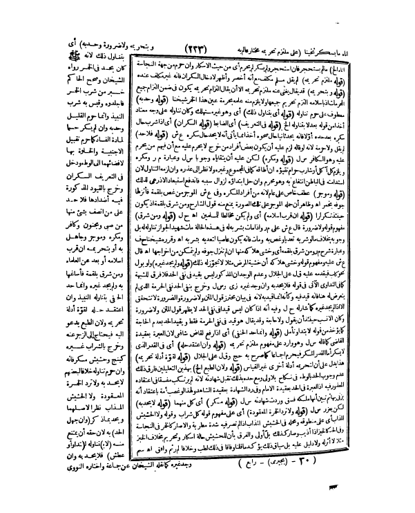 (عَلَى مُلْتَزِمِ تَحْرِيمِهِ مُخْتَارٍ عَالِمٍ بِهِ وَبِتَحْرِيمِهِ وَلَا ضَرُورَةَ، وَحُدَّ بِهِ) أَيْ بِتَنَاوُلِ ذَلِكَ «؛ لِأَنَّهُ - صَلَّى اللَّهُ عَلَيْهِ وَسَلَّمَ - كَانَ يَحُدُّ فِي الْخَمْرِ» رَوَاهُ الشَّيْخَانِ وَصَحَّحَ الْحَاكِمُ خَبَرَ مَنْ شَرِبَ الْخَمْرَ فَاجْلِدُوهُ وَقِيسَ بِهِ شُرْبُ النَّبِيذِ وَإِنَّمَا حُرِّمَ الْقَلِيلُ وَحُدَّ بِهِ وَإِنْ لَمْ يُسْكِرْ حَسْمًا لِمَادَّةِ الْفَسَادِ كَمَا حُرِّمَ تَقْبِيلُ الْأَجْنَبِيَّةِ وَالْخَلْوَةُ بِهَا لِإِفْضَائِهِمَا إلَى الْوَطْءِ وَدَخَلَ فِي التَّعْرِيفِ السَّكْرَانُ وَخَرَجَ بِالْقُيُودِ الْمَذْكُورَةِ فِيهِ أَضْدَادُهَا فَلَا حَدَّ عَلَى مَنْ اتَّصَفَ بِشَيْءٍ مِنْهَا مِنْ صَبِيٍّ وَمَجْنُونٍ وَكَافِرٍ وَمُكْرَهٍ وَمُؤَجَّرٍ وَجَاهِلٍ بِهِ أَوْ بِتَحْرِيمِهِ إنْ قَرُبَ إسْلَامُهُ أَوْ بَعُدَ عَنْ الْعُلَمَاءِ، وَمَنْ شَرِقَ بِلُقْمَةٍ فَأَسَاغَهَا بِهِ وَلَمْ يَجِدْ غَيْرَهُ وَإِنَّمَا حُدَّ الْحَنَفِيُّ بِتَنَاوُلِهِ النَّبِيذَ وَإِنْ اعْتَقَدَ حِلَّهُ لِقُوَّةِ أَدِلَّةِ تَحْرِيمِهِ؛ وَلِأَنَّ الطَّبْعَ يَدْعُو إلَيْهِ فَيَحْتَاجُ إلَى الزَّجْرِ عَنْهُ وَخَرَجَ بِالشَّرَابِ غَيْرُهُ كَبَنْجٍ وَحَشِيشٍ مُسْكِرٍ فَإِنَّهُ وَإِنْ حَرُمَ تَنَاوُلُهُ خِلَافًا لِبَعْضِهِمْ لَا يُحَدُّ بِهِ وَلَا تَرِدُ الْخَمْرَةُ الْمَعْقُودَةُ وَلَا الْحَشِيشُ الْمُذَابُ نَظَرَا لِأَصْلِهِمَا وَيُحَدُّ بِمَا ذُكِرَ (وَإِنْ جَهِلَ الْحَدَّ) بِهِ؛ لِأَنَّ حَقَّهُ أَنْ يَمْتَنِعَ مِنْهُ (لَا بِ) تَنَاوُلِهِ ل (تَدَاوٍ أَوْ عَطَشٍ) فَلَا يُحَدُّ بِهِ وَإِنْ وَجَدَ غَيْرَهُ كَمَا نَقَلَهُ الشَّيْخَانِ عَنْ جَمَاعَةٍ وَاخْتَارَهُ النَّوَوِيُّ فِي تَصْحِيحِهِ