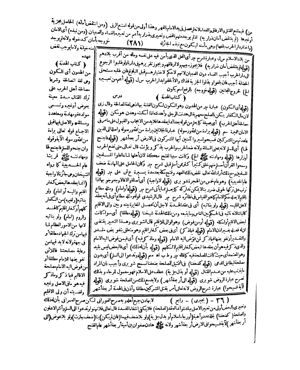 [دَرْسٌ] (كِتَابُ الْهُدْنَةِ) (قَوْلُهُ: أَيْ: السُّكُونِ) عِبَارَةُ م ر مِنْ الْهُدُونِ وَهُوَ السُّكُونُ لِسُكُونِ الْفِتْنَةِ بِهَا إذْ هِيَ لُغَةً: الْمُصَالَحَةُ وَقَالَ ز ي: لِأَنَّ مَالِ الْكُفَّارِ يَسْكُنُ بِالصُّلْحِ مَعَهُمْ يُقَالُ: هَدَنْت الرَّجُلَ وَأَهْدَنْتُهُ إذَا أَسْكَنْته وَهَدَنَ هُوَ سَكَنَ. (قَوْلُهُ: مُصَالَحَةُ أَهْلِ الْحَرْبِ) أَيْ: بِصِيغَةٍ، كَمَا يُعْلَمُ مِنْ قَوْلِهِ بَعْدُ: إنَّمَا يَعْقِدُهَا فَلَا بُدَّ مِنْ الْإِيجَابِ، وَالْقَبُولِ عَلَى مَا مَرَّ فِي الْأَمَانِ عَمِيرَةُ سم. قَوْلُهُ: {بَرَاءَةٌ مِنَ اللَّهِ وَرَسُولِهِ} [التوبة: 1] عِبَارَةُ الْجَلَالَيْنِ {بَرَاءَةٌ مِنَ اللَّهِ وَرَسُولِهِ} [التوبة: 1] وَاصِلَةٌ {إِلَى الَّذِينَ عَاهَدْتُمْ مِنَ الْمُشْرِكِينَ} [التوبة: 1] {فَسِيحُوا} [التوبة: 2] سِيرُوا آمَنِينَ أَيُّهَا الْمُشْرِكُونَ {فِي الأَرْضِ أَرْبَعَةَ أَشْهُرٍ} [التوبة: 2] .