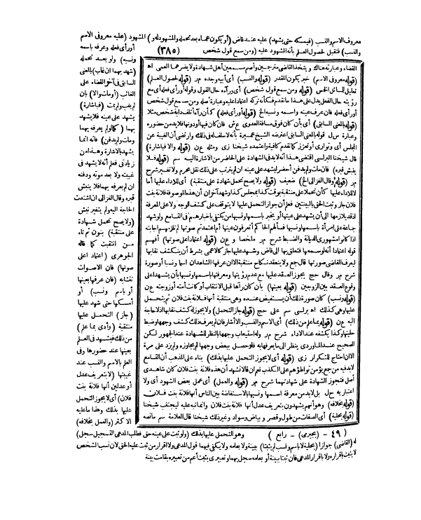 ـــــــــــــــــــــــــــــQالْقَضَاءِ وَعِبَارَتُهُ: هُنَاكَ وَيَتَّخِذُ الْقَاضِي مُتَرْجِمِينَ وَأَصَمُّ مُسْمِعِينَ أَهْلَ شَهَادَةٍ وَلَا يَضُرُّهُمَا الْعَمَى اهـ (قَوْلُهُ مَعْرُوفَيْ الِاسْمِ) خَبَرُ يَكُونُ الْمُقَدَّرُ. (قَوْلُهُ: وَالنَّسَبِ) أَيْ: أَبِيهِ وَجَدِّهِ م ر. (قَوْلُهُ: لِحُصُولِ الْعِلْمِ) تَعْلِيلٌ لِلْمَسَائِلِ الْخَمْسِ (قَوْلُهُ وَمَنْ سَمِعَ قَوْلَ شَخْصٍ) أَيْ: وَرَآهُ حَالَ الْقَوْلِ وَقَوْلُهُ أَوْ رَأَى فِعْلَهُ أَيْ: مَعَ رُؤْيَتِهِ حَالَ الْفِعْلِ يَدُلُّ عَلَى هَذَا مَا تَقَدَّمَ فَكَأَنَّهُ تَرَكَهُ اعْتِمَادًا عَلَيْهِ، وَعِبَارَةُ أَصْلِهِ وَمَنْ سَمِعَ قَوْلَ شَخْصٍ أَوْ رَأَى فِعْلَهُ فَإِنْ عَرَفَ عَيْنَهُ وَاسْمَهُ وَنَسَبَهُ إلَخْ.