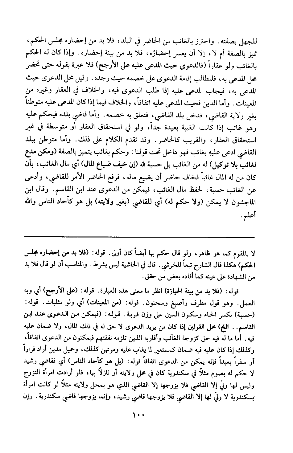 لا بالمقوم كما هو ظاهره ، ولو قال حكم بها أيضاً كان أولى . قوله : 16 ( فلا بد من إحضاره مجلس الحكم ) : هكذا قال الشارح تبعاً للخرشي قال في الحاشية ليس بشرط ، و المناسب أن لو قال فلا بد من الشهادة على عينه كما أفاده بعض من حقق . قوله : 16 ( فلا بد من بينة الحيازة ) : انظر ما معنى هدة العبارة . قوله : 16 ( على الأرجح ) : أي وبه العمل وهو قول مطرف و أصبغ و سحنون . قوله : 16 ( من المعينات ) : أي ولو مثليات . قوله : 16 ( حسبة ) : بكسر الحاء و سكون السين على وزن قربة . قوله : 16 ( فيمكن من الدعوى عند ابن القاسم ) : الخ : محل القولين إذا كان من يريد الدعوى لا حق له في ذلك ولا ضمان عليه فيه ، أما ماله فيه حق كزوجة الغائب و أقاربه الذين تلزمه نفقتهم فيمكنون من الدعوى اتفاقاً ، و كذلك إذا كان عليه فيه ضمان كمستعير لما يغاب عليه و مرتهن كذلك و حميل مدين أراد فراراً أو سفراً بعيداً فإنه يمكن من الدعوى اتفاقاً . قوله : 16 ( بل هو كاحاد الناس ) : ) ) 16 ( 16 ( أي فقاضي رشيد لا حكم له بصوم مثلاً في اسكندرية كان في محل ولايته أو نازلاً بها ، فلو أرادت امرأة التزوج و ليس لها ولي إلا القاضي فلا يزوجها إلا القاضي الذي هو بمحل ولايته ؛ مثلاً لو كانت امرأة بإسكندرية لا ولي لها إلا القاضي فلا يزوجها قاضي رشيد و إنما يزوجها قاضي إسكندرية ، و إن