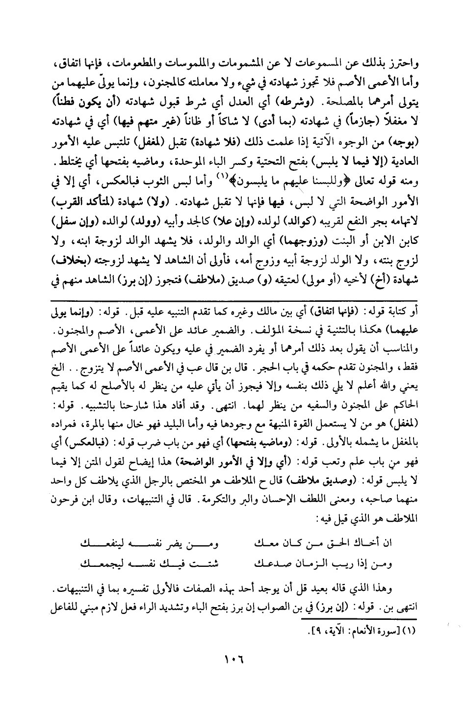 قوله : 16 ( أي إلا في الأمور الواضحة ) : هذا إيضاح لقول المتن إلا فيما لا يلبس .