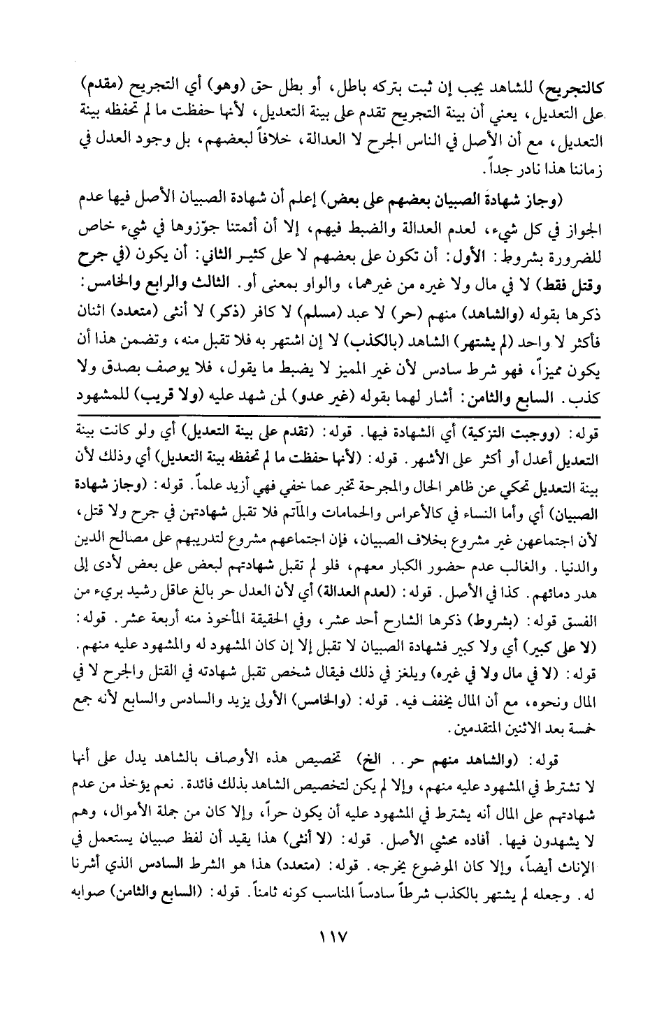 قوله : 16 ( والشاهد منهم حرّ ) إلخ : تخصيص هذه الأوصاف بالشاهد يدل على أنها لا تشترط في المشهود عليه منهم و إلا لم يكن لتخصيص الشاهد بذلك .
