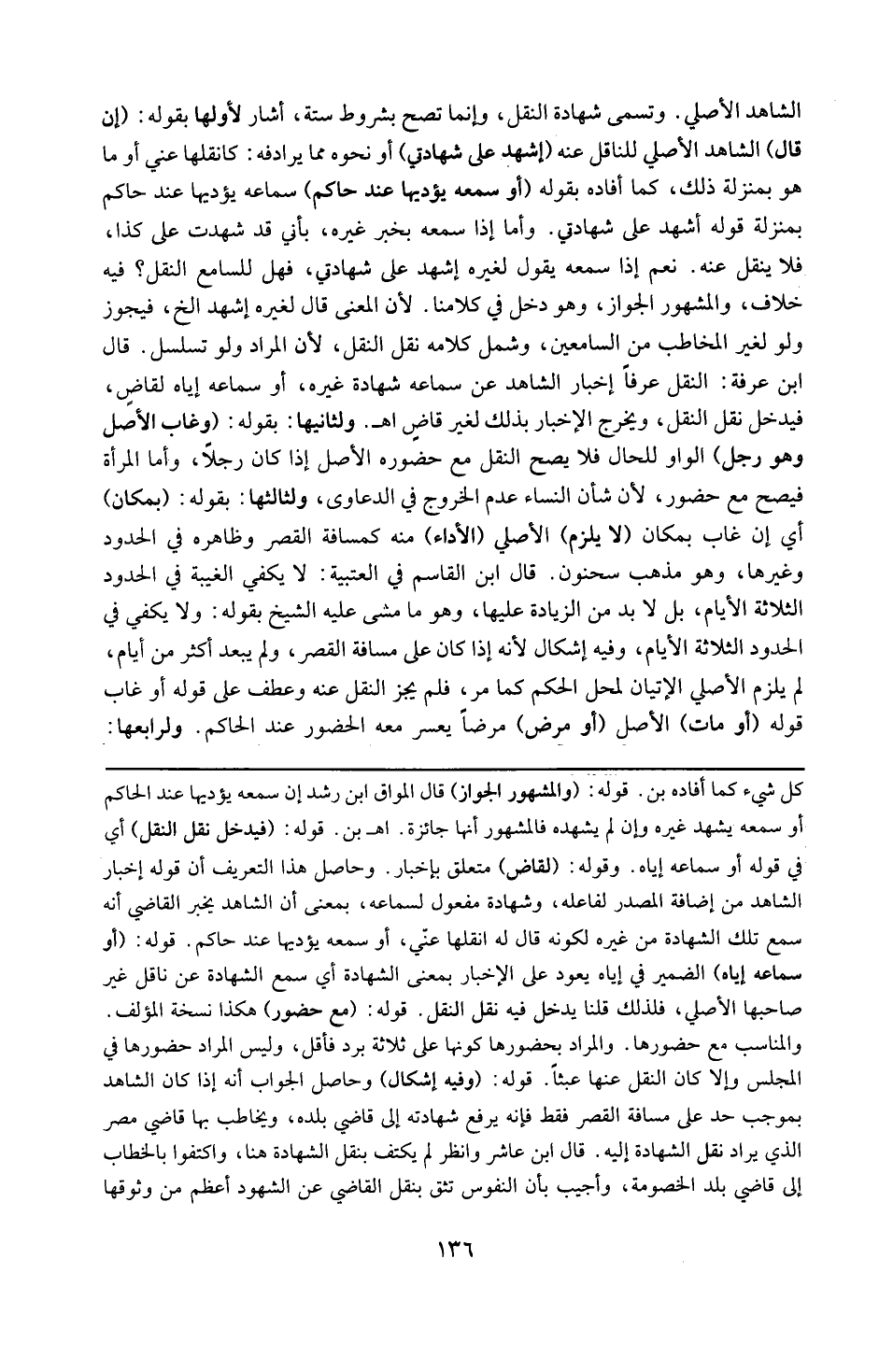 و حاصل هذا التعريف أن قول إخبار الشاهد من إضافة المصدر لفاعل و شهادة مفعول لسماعه . بمعنى أن الشاهد يخبر القاضي أنه سمع تلك الشهادة من غيره لكونه قال له انقلها عني أو سمعه يؤديها عند حاكم ، و قوله أو سماعه إياه الضمير في إياه يعود على الإخبار بمعنى الشهادة أي سمع الشهادة عن ناقل غير صاحبها الأصلي فلذلك قلنا يدخل فيه نقل النقل .