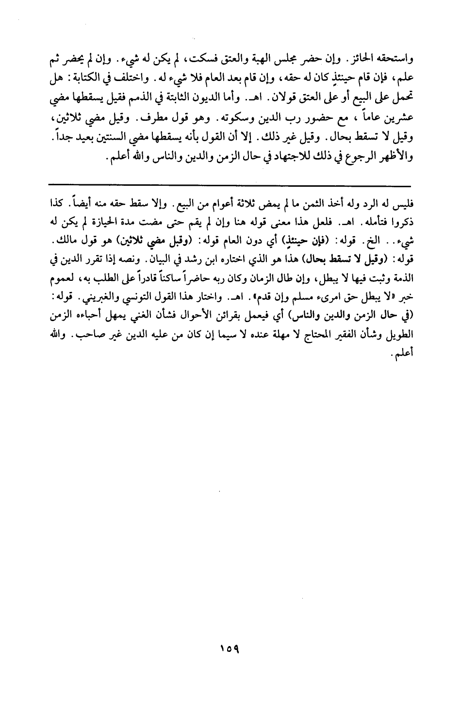 قوله : 16 ( في حال الزمن و الدين و الناس ) : أي فيعمل بقرائن الأحوال فشأن الغني يمهل أحباءه الزمن الطويل و شأن الفقير المحتاج لا مهلة عنده ولا سيما إن كان من عليه الدين غير صاحب ، و الله أعلم .