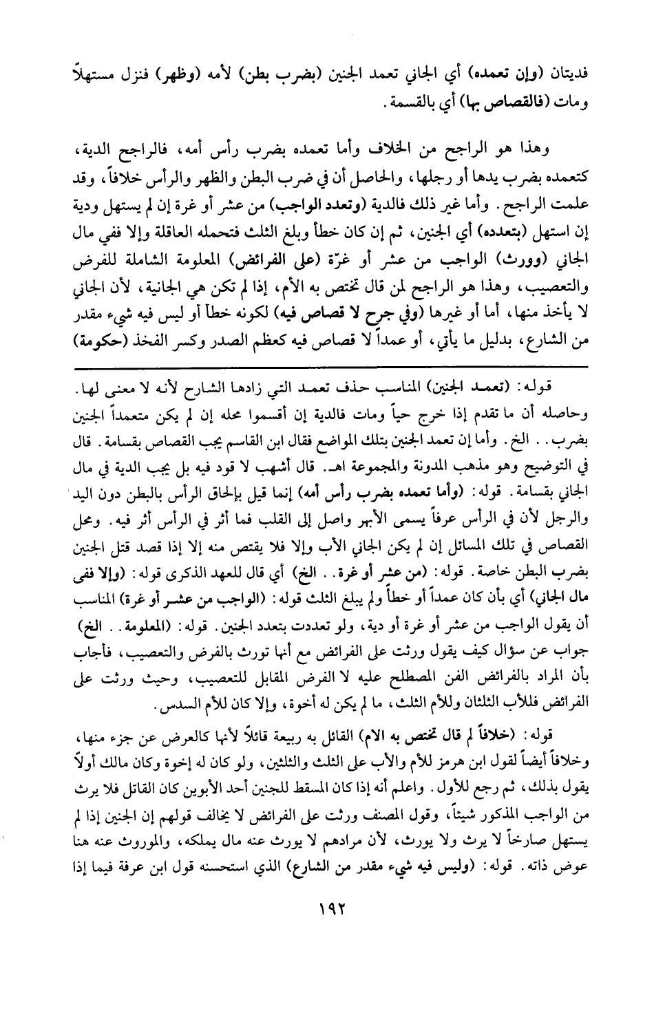 . قوله : 16 ( تعمد الجنين ) : الناسب حذف تعمد التى زادها الشارح لأنه لا معنى لها . و حاصله أن ما تقدم إذا خرج حيًّا و مات فالدية إن أقسموا محله إن لم يكتن متعمدا الجنين بضربه إلخ ، و أما إن تعمد الجنين بتلك المواضع فقال ابن القاسم يجب القصاص بقسامة قال فى التوضيح و هو مذهب المدونة و المجموعة قال أشهب : لا قود فيه بل تجب فدية فى مال الجانى بقسامة . قوله : 16 ( و أما تعمده بضرب رأس أمه ) : إنما قيل بإلحاق الرأس بالبطن دون اليد و الرحل لأن فى الرأس عرقا يسمى الأبهر واصل إلى القلب فما أثر فى الرأس و محل القصاص فى تلك المسائل إن لم يكن الجانى الأب و إلا فلا يقتص منه إلا إذا قصد قتل الجنين بضرب البطن خاصة . قوله : 16 ( من عشر أو غرة ) إلخ : أى فأل للعهد الذكرى . قوله : 16 ( و إلا فى مال الجانى ) : أى بأن كان عمدا أو خطأ و لم يبلغ الثلث . قوله : 16 ( الواجب من عشرأو غرة ) : المناسب أن يقول الواجبات من عشر أو غرة و لو تعددت بتعدد الجنين . قوله : 16 ( المعلومة ) إلخ : جواب عن سؤال كيف يقول ورثت على الفرائض مع أنها تورث بالفرض و التعصيب . فأجاب بأن المراد بالفرائض الفن المصطلح عليه لا الفرض المقابل للتعصيب و حيث ورثت على الفرائض فللأب الثلثان و للأم الثلث ما لم يكن له إخوة و إلا كان للأم السدس . و قوله : 16 ( خلافا لمن قال تختص به الأم ) : القائل به ربيعة قائلا لأنها كالعوض عن جزء منها و خلاف ا أيضا لقول ابن هرمز للأم و الأب على الثلث و الثلثين و لو كان له إخوة و كان مالك أوّلا يقول بذلك ثم رجع للأول . و اعلم أنه إذا كان المسقط للجنين أحد الأبوين أو الإخوة كان كالقاتل فلا يرث من الواجب المذكور شيئا ، و قول المصنف : ورثت على الفرائض لا يخالف قولهم : إن الجنين إذا لم يستهل صارخا لا يرث و لا يورث لأن مرادهم لا يورث عنه مال يملكه و الموروث عنه هنا عوض ذاته . قوله : 16 ( و ليس فيه شىء مقدّر من الشارع ) : الذى استحسنه ابن عرفه فيما إذا