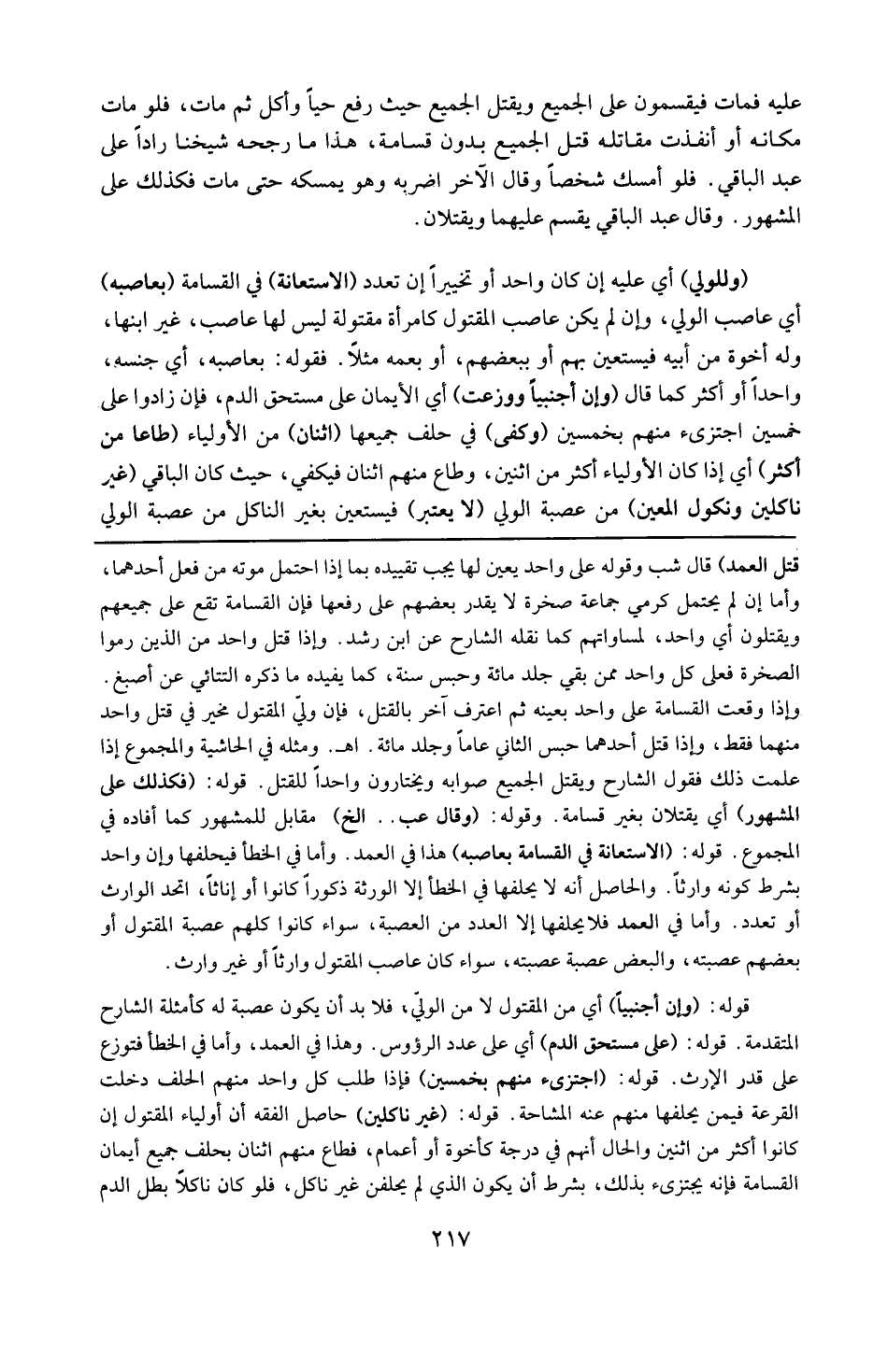 قوله : 6 ( غير ناكلين ) : حاصل : الفقه أن أولياء المقتول إن كانوا أكثر من اثنين و الحال أنهم في درجة كإخوة أو أعمام فطاع منهم اثنان بحلف جميع أيمان القسامة فإنه يجتزأ بذلك بشرط أن يكون الذي لم يحلف غير ناكل فلو كان ناكلا بطل الدم