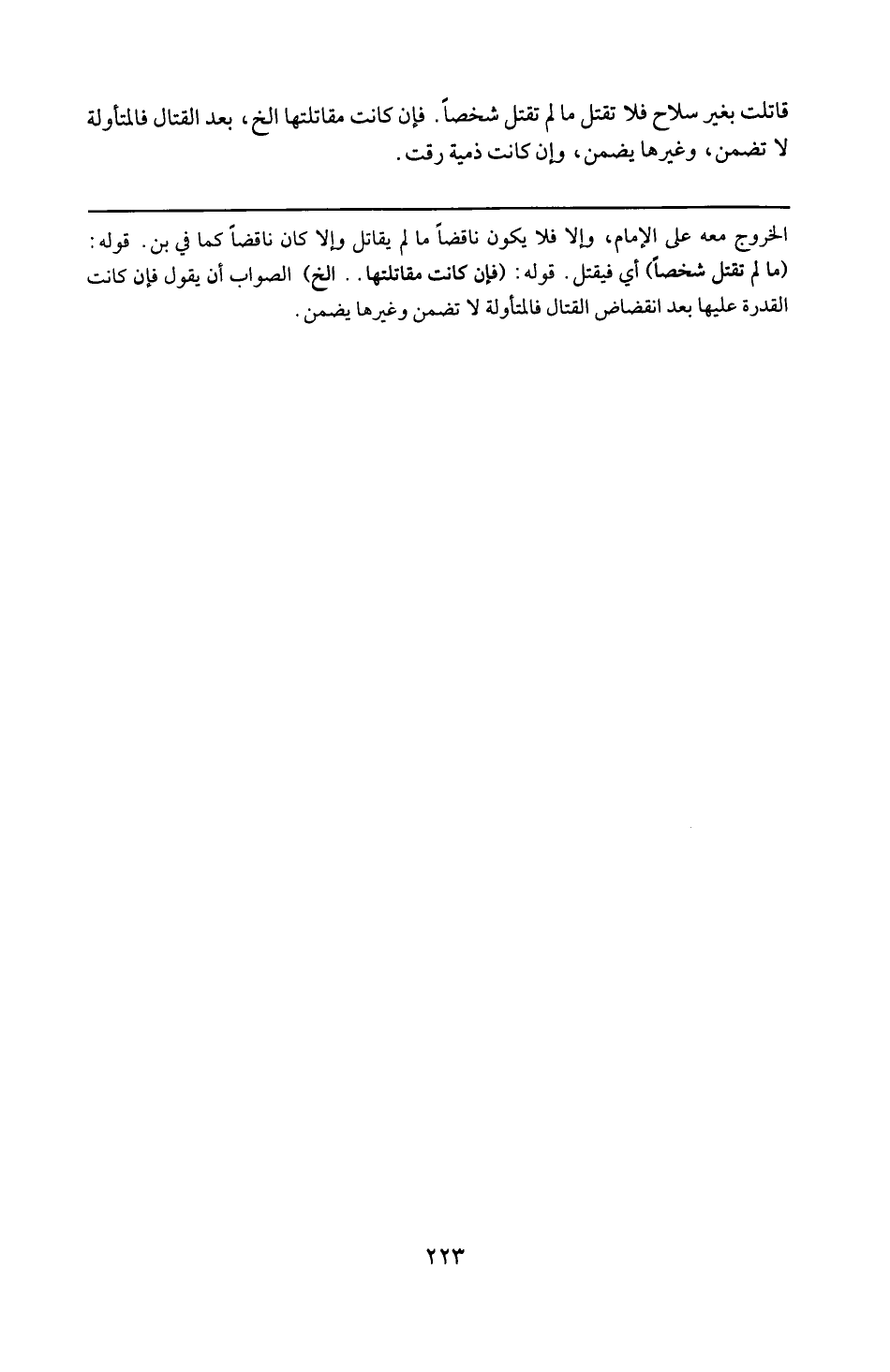 قوله : 16 ( فإن كانت مقاتلتها ) : الخ : الصواب أن يقول فإن كانت القدرة عليها بعد انقضاض القتال فالمتأولة لا تضمن و غيرها يضمن .