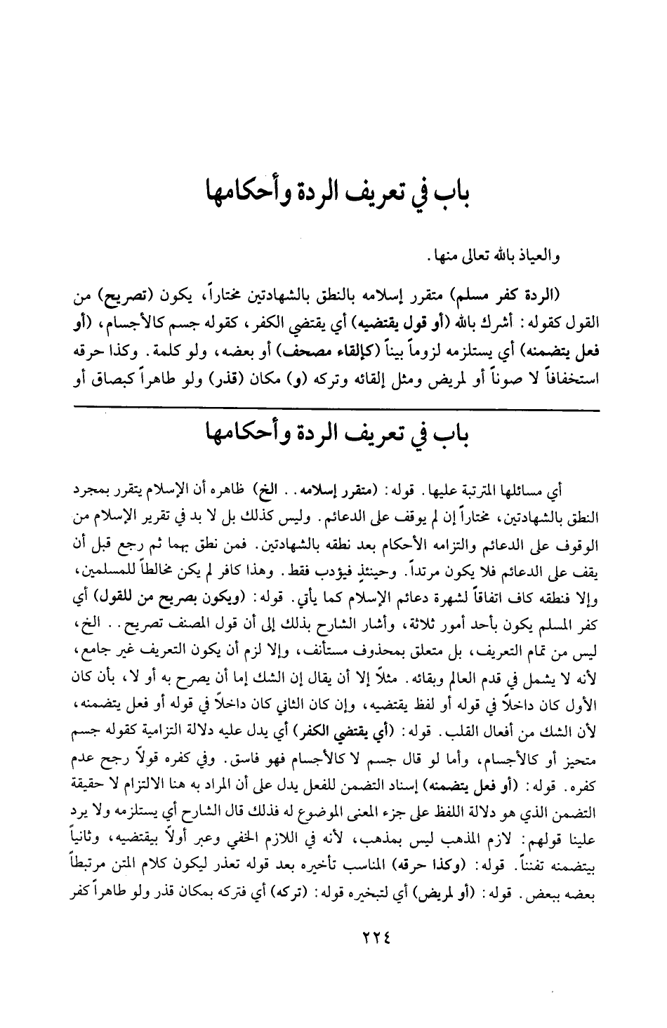 قوله : 16 ( متقرر إسلامه ) : الخ : ظاهره أن الإسلام يقرر بمجرد النطق بالشهادتين مختاراً ، و إن لم يوقف على الدعائم و ليس كذلك ، بل لابد في تقرر الإسلام من الوقوف على الدعائم و التزمه الأحكام بعد نطقه بالشهادتين ، فمن نطق بهما ثم رجع قبل أن يقف على الدعائم فلا يكون مرتداً ، و حينئذ فيؤدب فقط و هذا في كافر لم يكن مخالطاً للمسلمين و إلا فنطقه كاف اتفاقاً لشهوة دعائم الإسلام عنده كما يأتي .