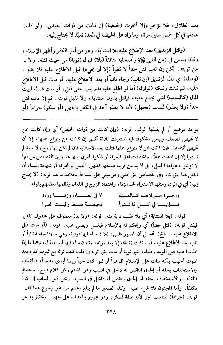 قوله : 16 ( و إن كانت من ذوات الحيض ) : أي و أما إن كانت ممن لا تحيض لضعف أو إياس مشكوك فيه استبرئت بثلاثة أشهر إن كانت ممن يتوقع حملها ، إلا إن تحيض أثناءها فإن كانت ممن لا يتوقع حملها قتلت بعد الاستتابة ، فإن لم يكن له زوج و لا سيد لم تستبرأ إلا إن ادعت حملا ، و اختلف أهل المعرفة أو شكوا و الفرق بينهما هنا و بين القصاص من أنها لا تؤخر بدعواها الحمل ، بل لابد من قرينة صدقها كظهور الحمل أو تحركه أو شهادة النساء أن القتل هنا حق لله ، و في القصاص حق ادمى و هومبني على المشاحة بخلاف ما هنا .