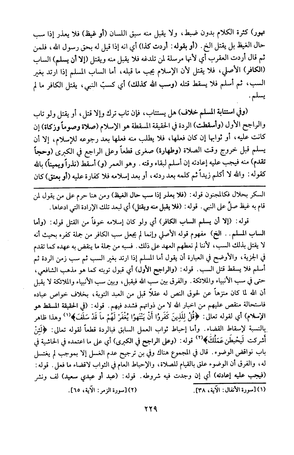 قوله : 16 ( في الحقيقة المسقط هو الإسلام ) : أي لقوله تعالى : { قُلْ للّذينَ كَفَروا إنْ ينتهوا يُغفرَ ما قد سلفَ } و هذا ظاهر بالنسبة لإسقاط القضاء ، و أما إحباط ثواب العمل السابق فبالردة قطعاً لقوله تعالى : { لئن أشركتَ ليحْبطَنَّ عَمَلُكَ } .