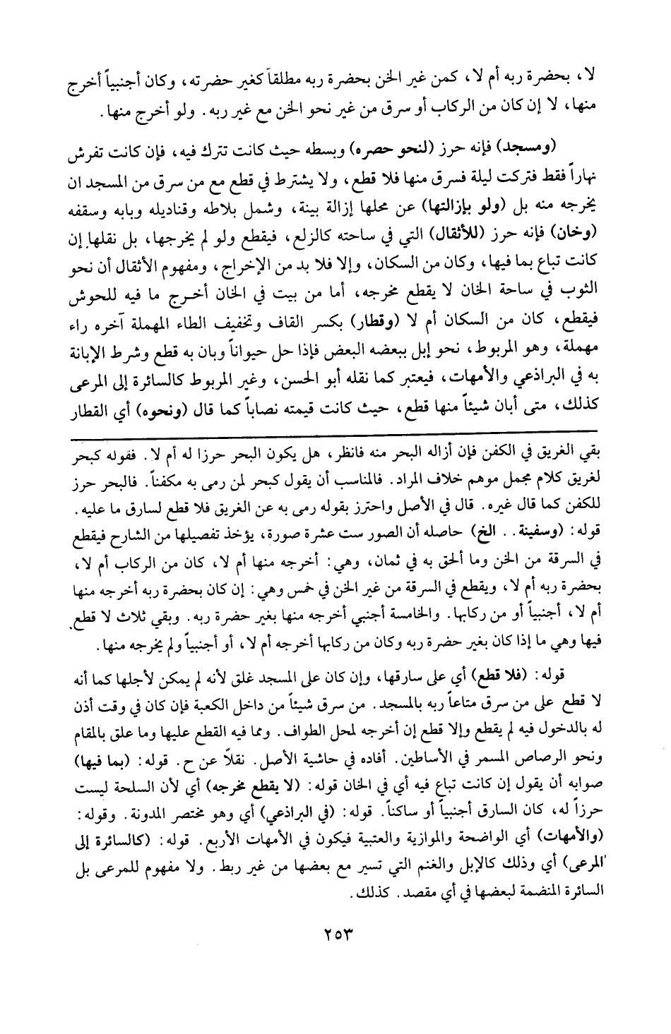 قوله : 16 ( فر قطع ) : أي على سارقها و إن كان على المسجد غلق لأنه لم يمكن لأجلها كما أنه لا قطع على من سرق متاعاً نسيه ربه بالمسجد و من سرق شيئاً من داخل الكعبة ، فإن كان في وقت أذن له بالدخول فيه لم يقطع و إلا قطع إن أخرجه لمحل الطواف و مما فيه القطع حليها و ما علق بالمقام و نحو الرصاص المسمر في الأساطين أفاده حاشية الأصل نقلا عن ( ح ) .