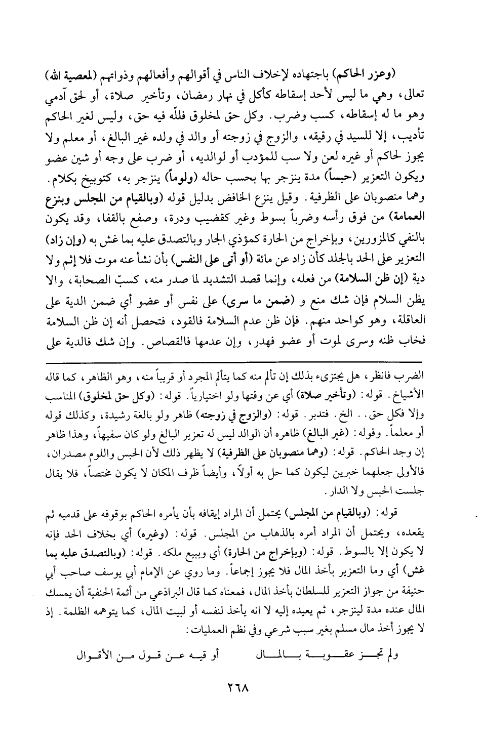قوله : 16 ( و بالتصدق عليه بما غش ) : أي و أما التعزير بأخذ المال فلا يجوزإجماعاً و ما روى عن الإمام أبى يوسف صاحب أبى حنيفة من جواز التعزير للسلطان بأخذ المال فمعناه كما قال البراذعى من أئمة الحنفية أن يمسك المال عنده مدة لينزجر ثم يعيده إليه لا أنه يأخذ لنفسه أو لبيت المال كما يتوهمه الظلمة ، إذ لا يجوز أخذ مال بغيرسبب شرعى و في نظم العمليات : (