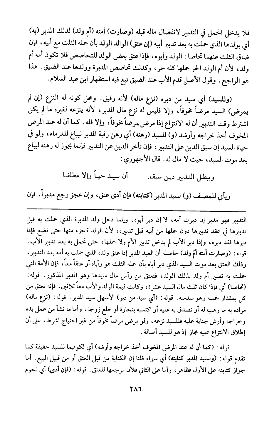 قوله : 16 ( و صارت أمته أم ولد ) : حاصله أن العبد المدبر إذا عتق الولد الذي حملت به بعد التدبير و ذلك العتق بعد موت السيد الذي دبر أباه بأن حمله الثلث هو و أبوه أو عتقا معاً فإن الأمة التي حملت به تصير أم ولد بذلك الولد فتعتق من رأس مال سيدها و هو المدبر المذكور .