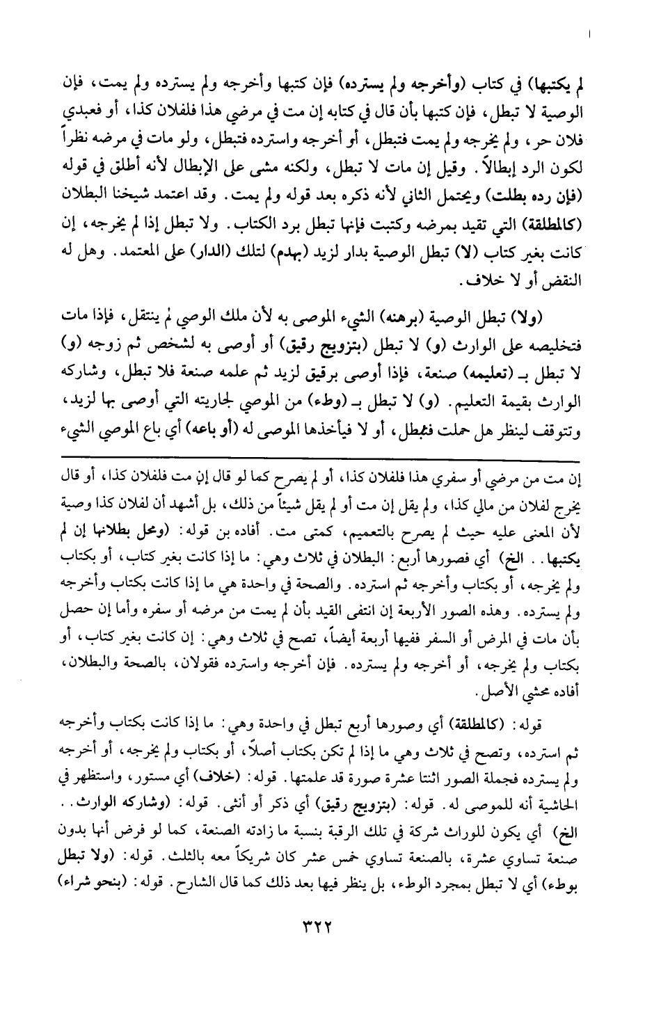 قوله : 16 ( و محل بطلانها إن لم يكتبها ) إلخ : أي فصورها أربع البطلان في ثلاث وهي ما إذا كانت بغير كتاب أو بكتاب ولم يخرجه أو بكتاب و أخرجه ثم استرده ، و الصحة في واحدة و هي ما إذا كانت بكتاب و أخرجه و لم يسترده . و هذه الصور الأربعة إذا انتفى القيد بأن لم يمت من مرضه أو سفره ، و أما إن حصل بأن مات في المرض أو السفر ففيها أربعة أيضاً تصح في ثلاث و هي إن كانت بغير كتاب أو بكتاب و لم يخرجه أو أخرجه و لم يسترده فإن أخرجه و استرده فقولان بالصحة و البطلان 19 ( أفاده محشي الأصل ) .