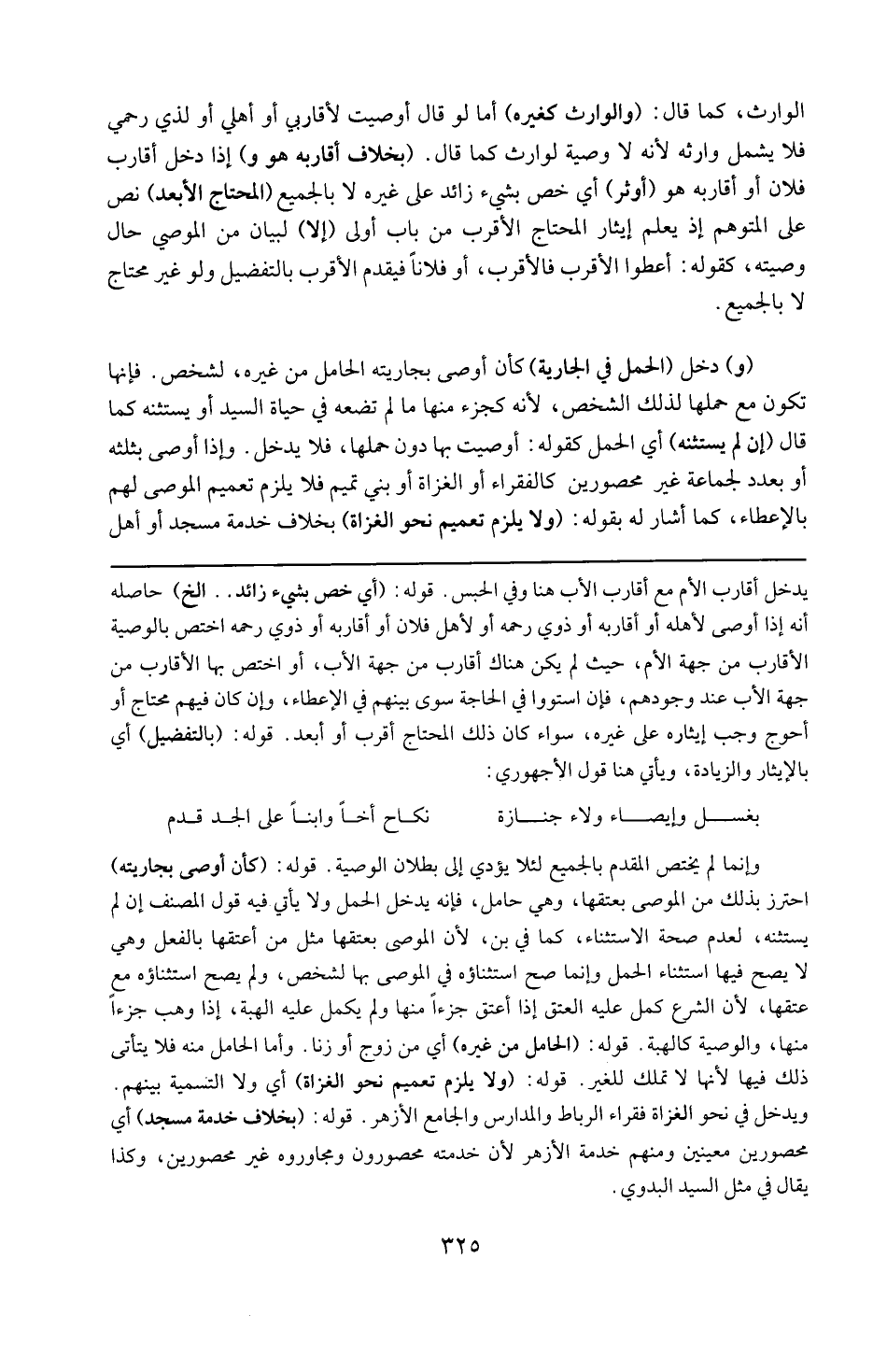 قوله : 16 ( أي خص بشيء زائد ) إلخ : حاصله أنه إذا أوصى لأهله أو أقاربه أو ذوي رحمه أو لأهل فلان أو أقاربه أو ذوي رحمه اختص بالوصية الأقارب من جهة لأم حيث لم يكن هناك أقارب من جهة الأب ، أو اختص بها الأقارب من جهة الأب عند وجودهم فإن استووا في الحاجة سوي بينهم في الإعطاء و إن ** كان فيهم محتاج أو أحوج وجب يثاره على غيره سواء كان ذلك المحتاج أقرب أو أبعد .
