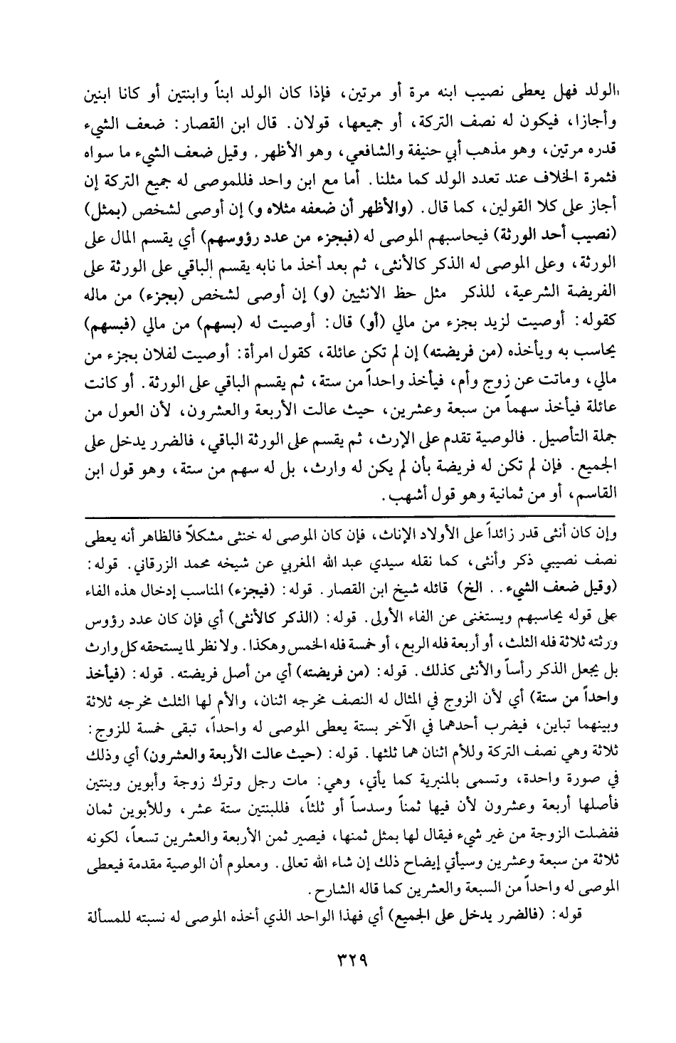 قوله : 16 ( فيأخذوا حدّاً من ستة ) : أي لأن الزوج في المثال له النصف مخرجه اثنان و الأم اها الثلث مخرجه ثلاثة و بينهما تباين فيضرب أحدهما في الآخر بستة يعطى الموصى له واحداً تبقى خمسة للزوج ثلاثة و هي نصف التركة و لوم اثنان هما ثلثها .