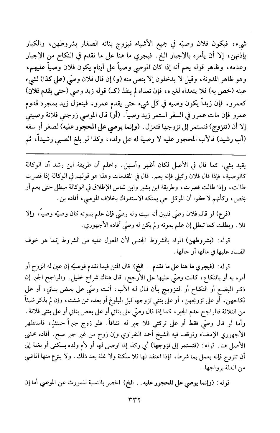 قوله : 16 ( فتستمر إلى تزوجها ) : أي وكذا إذا أوصى لها أو لأم ولده بسكنى أ و بغلة إلى أن تتزوج فإنه يعمل بما شرط ، فإذا عقد لها فلا سكنى لها ولا غلة بعد ذلك ، ولا ينزع منها الماضي من الغلة بزواجها . قوله : 16 ( وإنما يوصى على المحجور عليه ) إلخ : الحصر بالنسبة للموروث عن الموصي ، أما إن