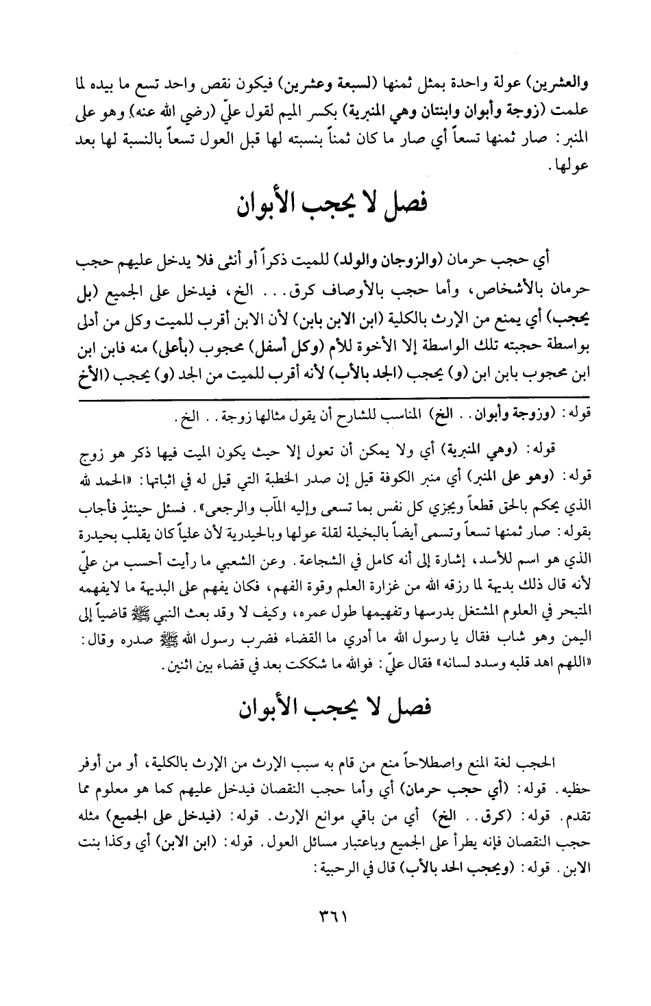 قوله : ( وزوجة وأبوان ) إلخ : المناسب للشارح أن يقول مثالها زوجة إلخ .