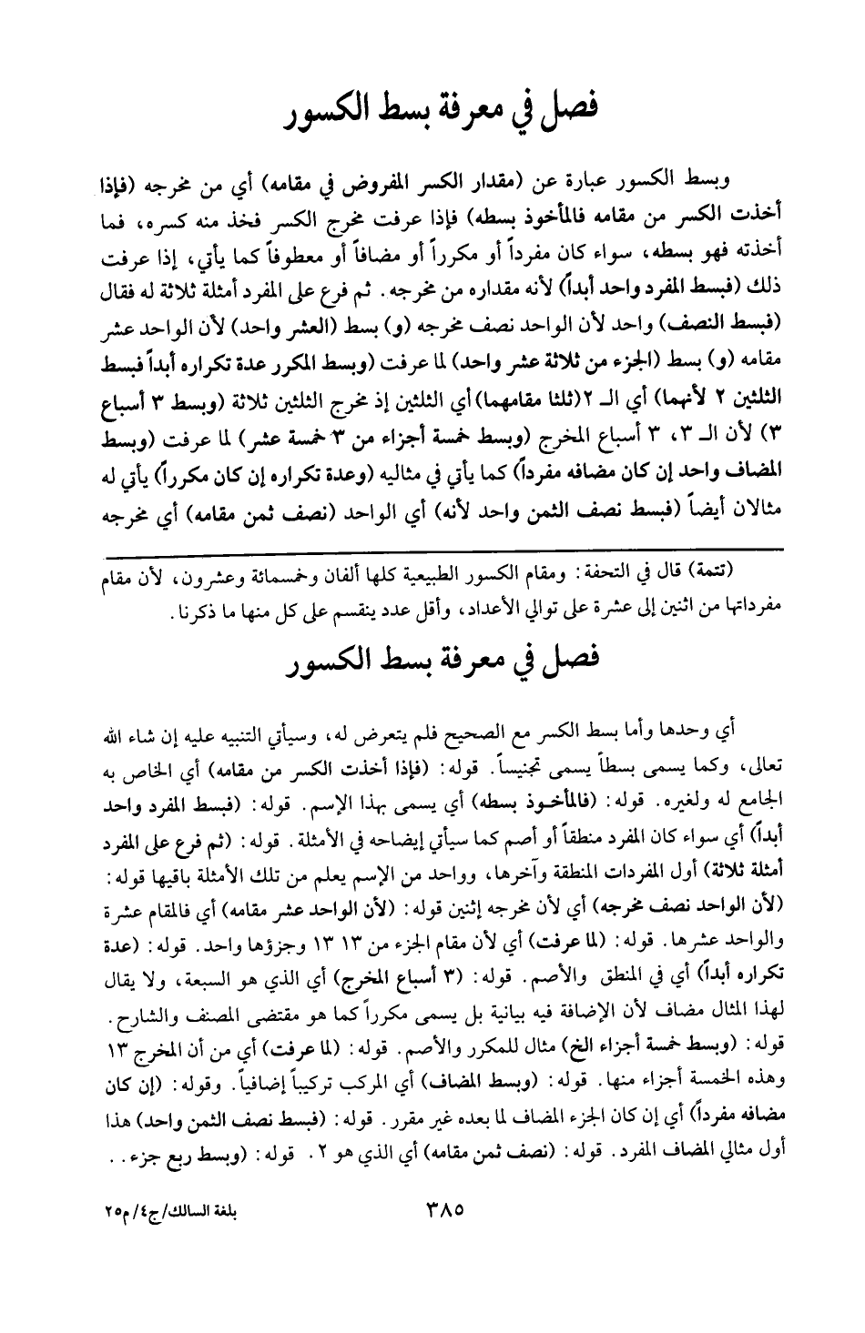 تتمة : قال في التحفة : ومقام الكسور الطبيعية كلها ألفان وخمسمائة وعشرون لأن مقام مفرداتها من اثنين إلى عشرة على توالي الأعداد وأقل ينقسم على كل منها ما ذكرنا .