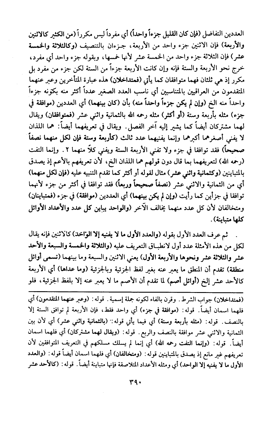 قوله : ( والعدد الأول مالا يفنيه إلا الواحد ) : أي ومثله الأعداد المتلاصقة فإنها متباينة أيضاً .