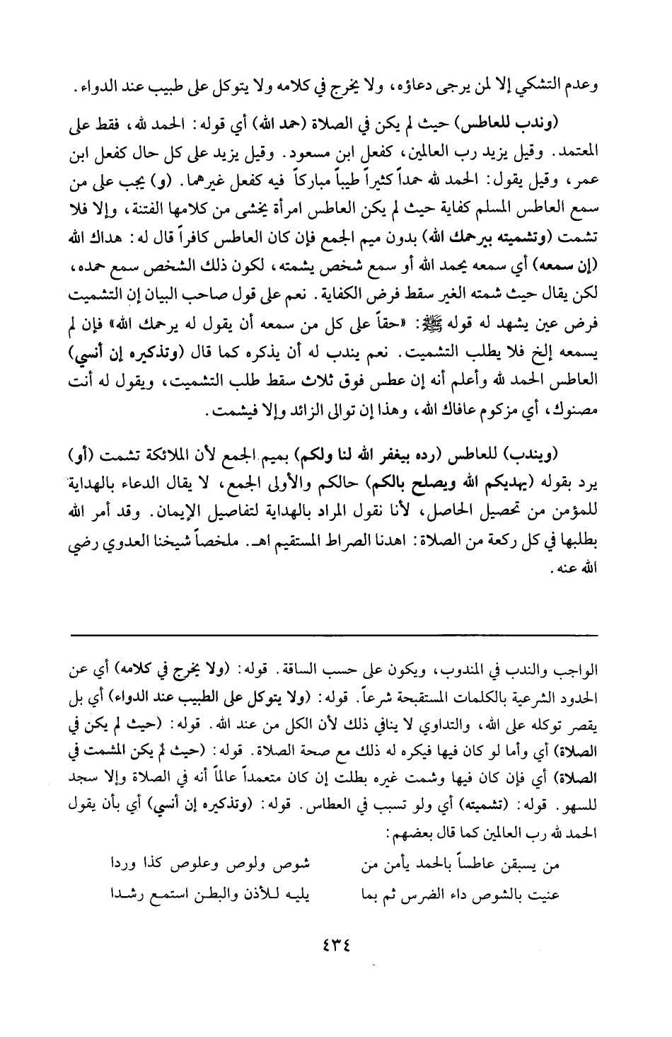 من يسبقن عاطساً بالحمد يأمن من ** شوص ولوص وعلوص كذا وردا **