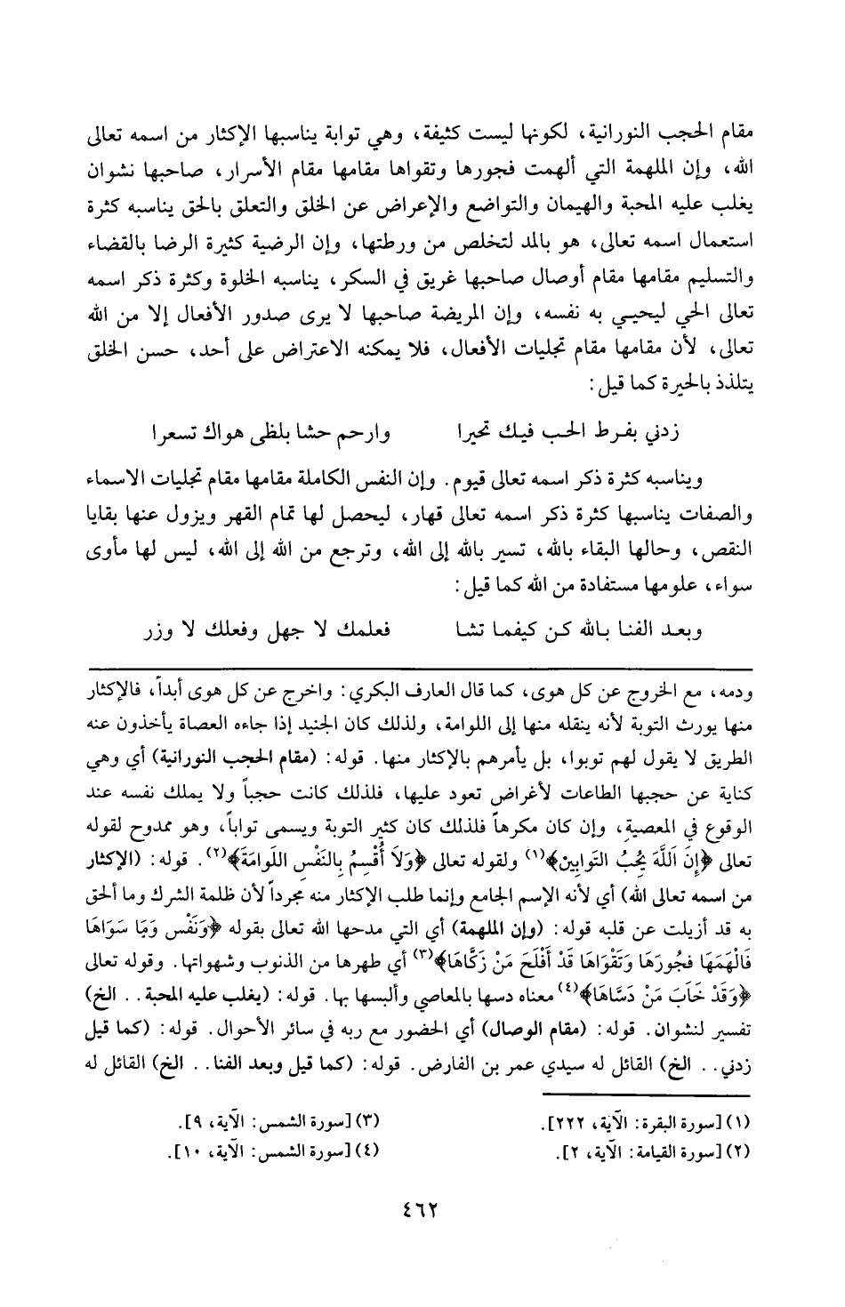 قوله : 16 ( مقام الحجب النورانية ) : أي و هي كناية حجباً و لا يملك نفسه عن ، الوقوع في المعصية ، و إن كان يكوهها فلذلك كان كثير التوبة و يسمى تواباً و هو ممدوح قوله تعالى : { إنَّ الله يُحبُّ التَّوَّابِينَ } و لقوله تعالى : { وَ لا أُقْسمُ بالنَّفسِ اللَّوَّامَةِ } .