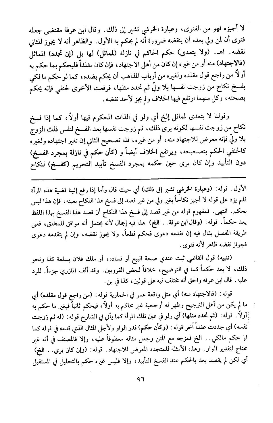 الأول . قوله : 16 ( وعبارة الخرشي تشير إلى ذلك ) : أي حيث قال : وأما إذا رفع إليه قضية هذه المرأة فلم يزد على قوله لا أجيز نكاحاً بغير ولي من غير قصد إلى فسخ هذا النكاح بعينه فإن هذا ليس بحكم ، انتهى ، فمفهوم قوله من غير قصد إلى فسخ هذا النكاح أنَّ قصد الفسخ بهذا اللفظ يعد حكماً . قوله : 16 ( وقال ابن عرفة ) الخ : هذا فيه إجمال لأنه يحتمل أنه موافق للمفصل أو للمطلق ، فعلى طريقة المفصل يقال فيه إن تقدمه دعوى فحكم قطعاً ولا يجوز نقضه وإن لم يتقدمه دعوى فجواز نقضه ظاهر لأنه فتوى . تنبيه : قول القاضي ثبت عندي صحة البيع أو فساده أو ملك فلان بسلعة كدا ونحو ذلك لا يعد حكماً كما في التوضيح خلافاً لبعض القرويين وقد ألف المازري جزءاً في الرد عليه قال ابن عرفة والحق أنه مختلف فيه على قولين كذا في ( بن ) . قوله : 16 ( فالاجتهاد منه ) : أي مثل واقعة عمر في الحمارية . قوله : 16 ( من راجح قول مقلده ) : أي مالم يكن من أهل الترجيح وظهر له أرجحية غير ما حكم به أولاً فيحكم ثانياً بغير ما حكم به أولاً . ) ) 16 ( 16 ( قوله : 16 ( ثم تجدد مثلها ) : أي ولو في عين تلك المرأة كما يأتي في الشارح . قوله : 16 ( ثم زوجت نفسها ) : أي جددت عقداً آخر . قوله : 16 ( وكأن حكم ) : قدَّر الواو لأجل المثال الذي قدمه في قوله كما لو حكم مالكي الخ فمزجه مع المتن وجعل مثاله معطوفاً عليه وإلا فالمصنف في حد ذاته غير محتاج لتقدير الواو ، وهذه الأمثلة للمتجدد المعرَّض للاجتهاد . قوله : 16 ( وإن كان يرى ) الخ : أي لكن لم يقصد بعد بالحكم عند الفسخ التأبيد وإلا فليس لغيره حكم بالتحليل في المستقبل