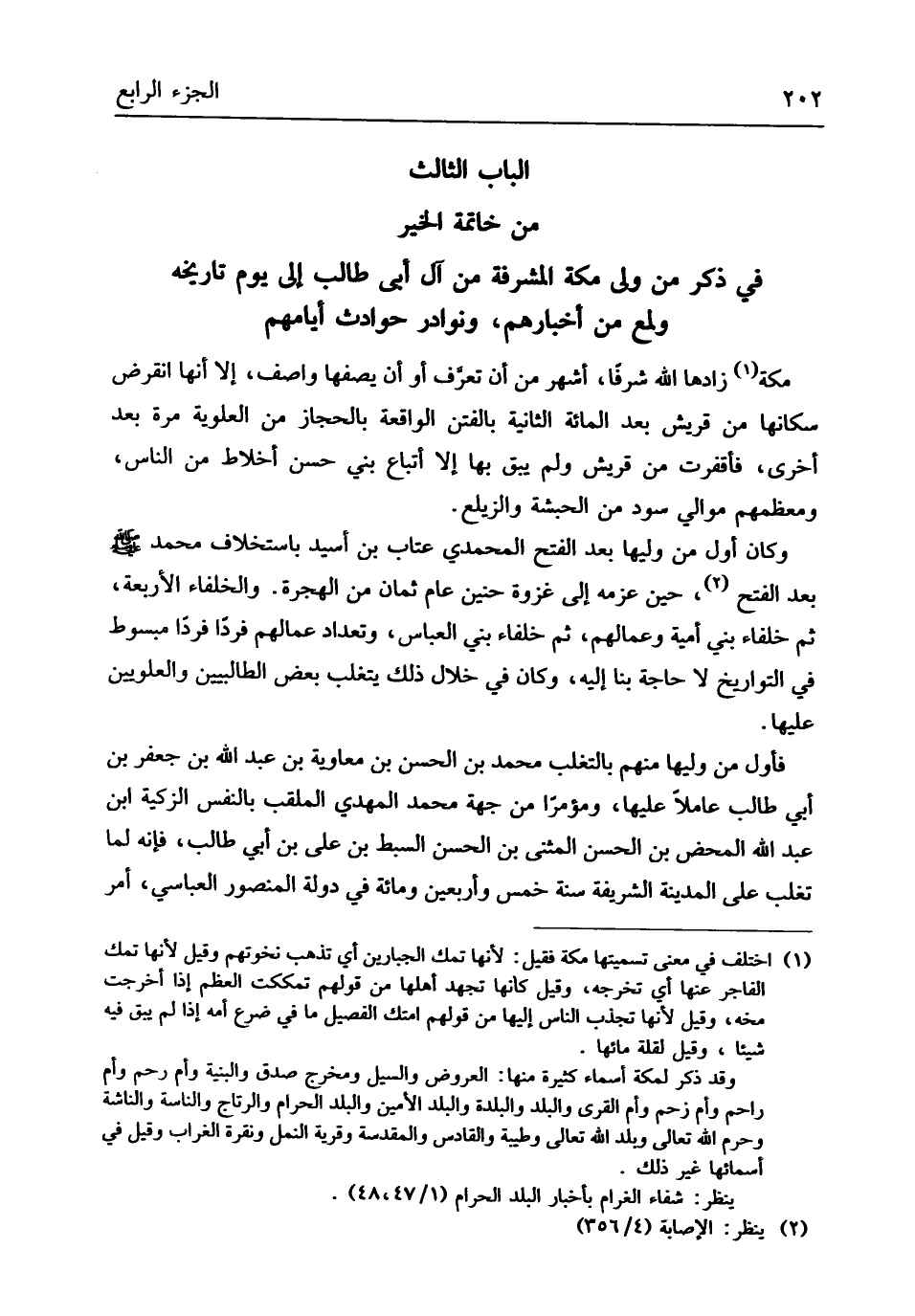 (فِي ذكر من ولي مَكَّة المشرفة من آل أبي طَالب إِلَى يَوْم تَارِيخه)