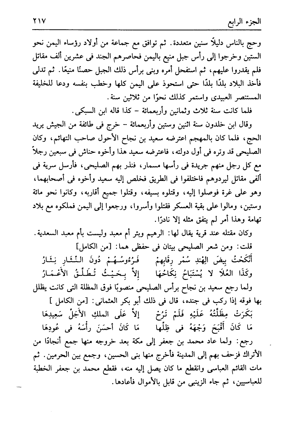 وَلما رَجَعَ سعيد بن نجاح بِرَأْس الصليحي مَنْصُوبًا فَوق المظلة الَّتِي كَانَت يظلل بهَا فَوْقه إِذا ركب فِي جنده قَالَ فِي ذَلِك أَبُو بكر العثماني // (من الْكَامِل) //