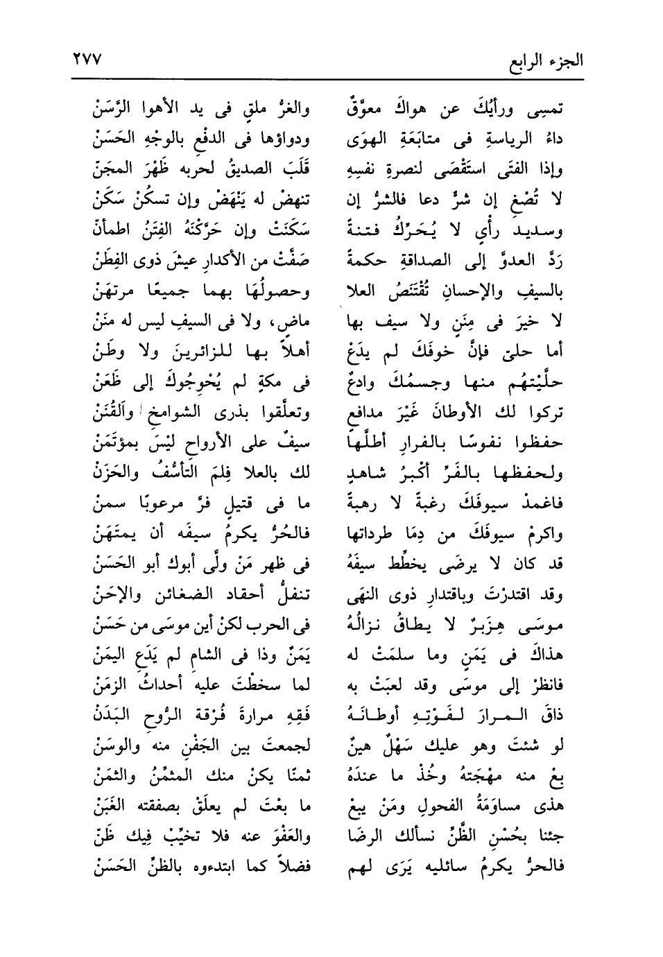 (داءُ الرياسةِ فِي متابَعَةِ الهوَى ... ودواؤها فِي الدفْعِ بالوجْهِ الحَسَنْ)