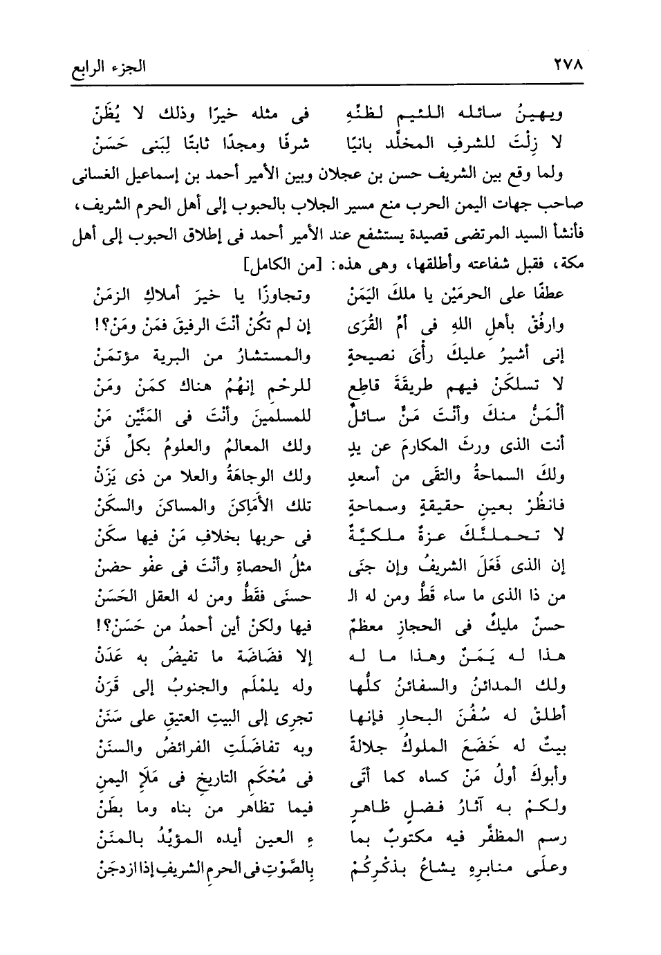 (عطفا على الحرمَيْن يَا ملكَ اليَمَنْ ... وتجاوزٌ ايا خيرَ أملاكِ الزمَنْ)