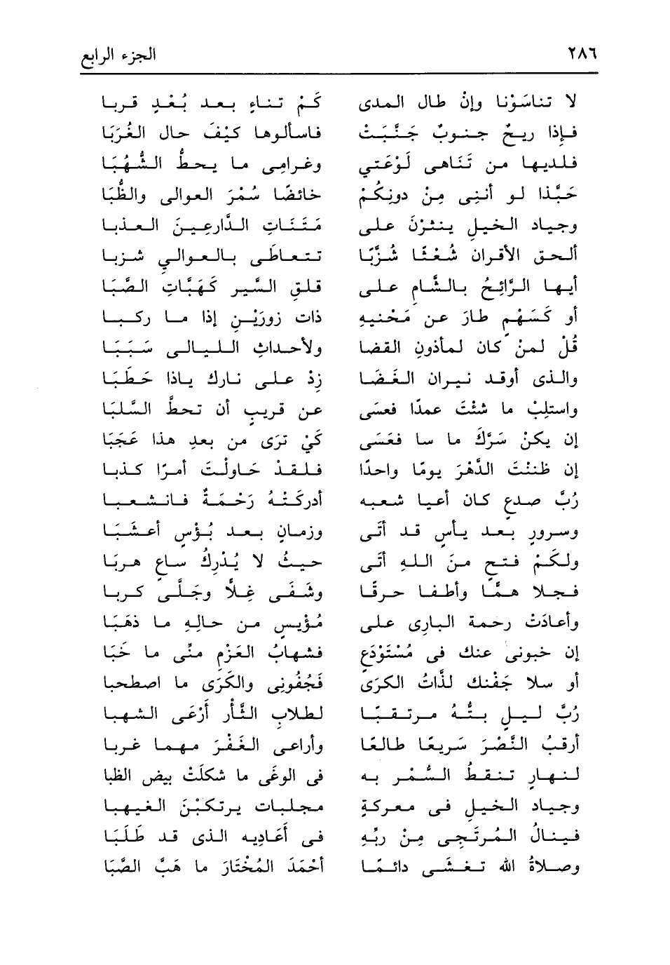 (لَا تناسَوْنا وإنْ طَال المدى ... كَمْ تناءٍ بعد بُعْدِ قربا)
