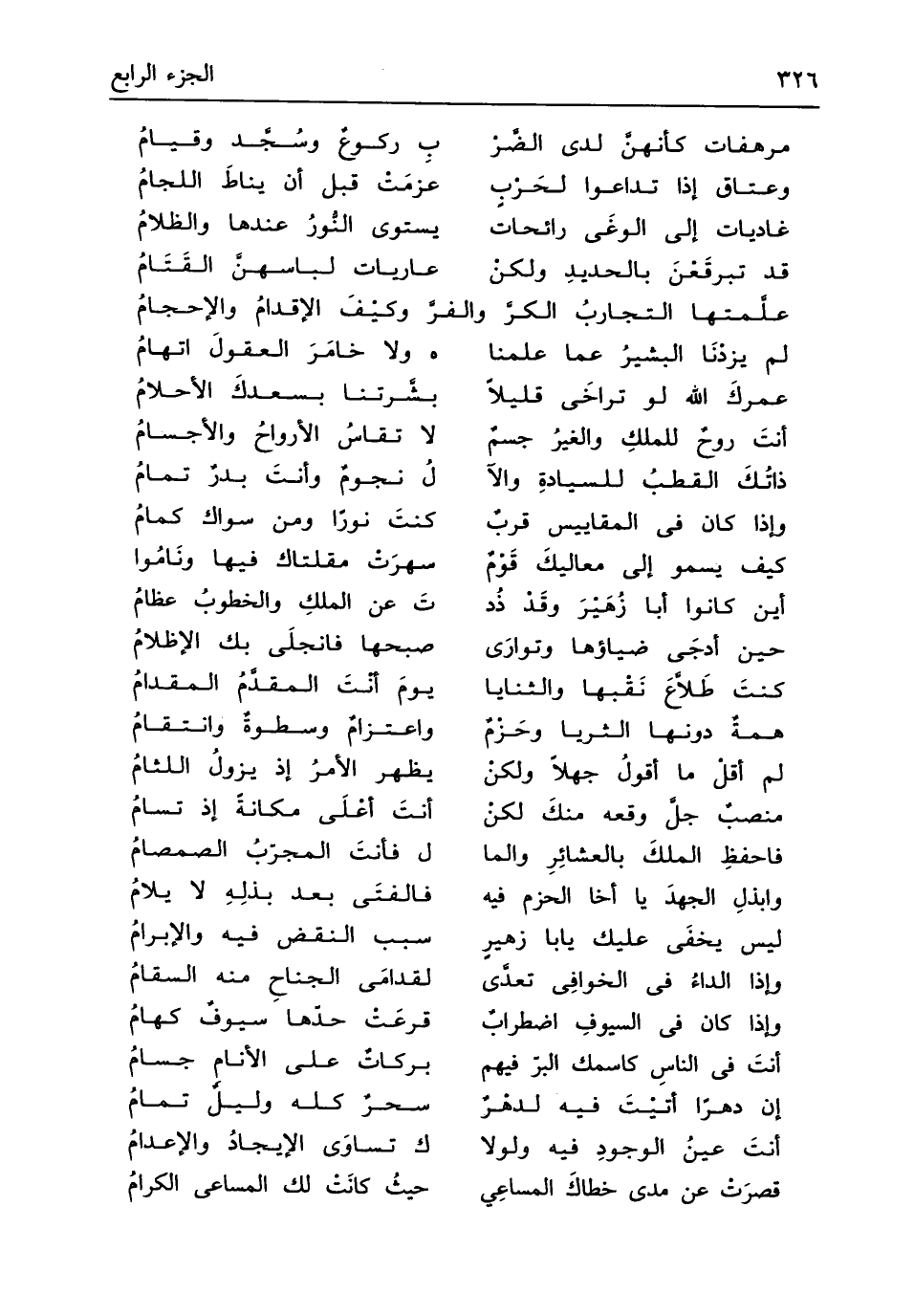 (غاديات إِلَى الوغَى رائحات ... يَسْتَوِي النُّورُ عِنْدهَا والظلامُ)