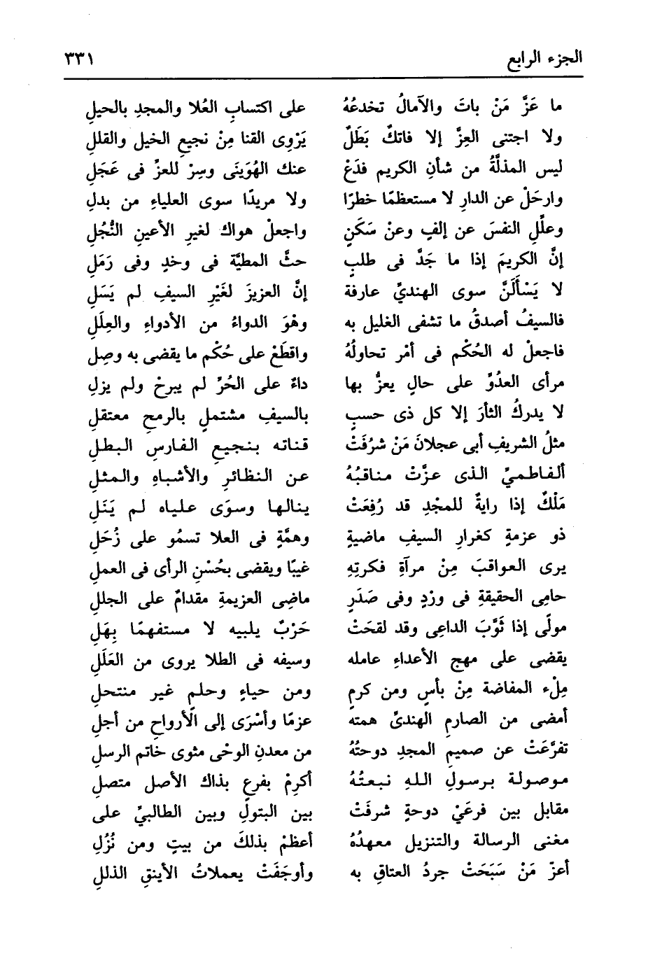 (لَيْسَ المذلَّةُ من شأنِ الْكَرِيم فدَعْ ... عَنْك الهُوَينَى وسِرْ للعزِّ فِي عَجَلِ)