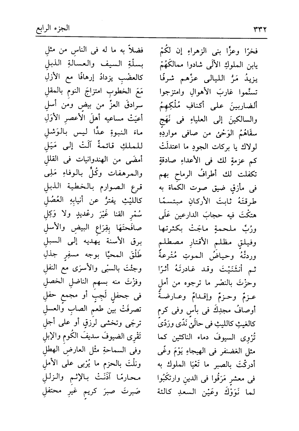 (فخراً وعزَّا بني الزهراءِ إِن لكُمْ ... فضلا بِهِ مَا لَهُ فِي الناسِ من مثلِ)